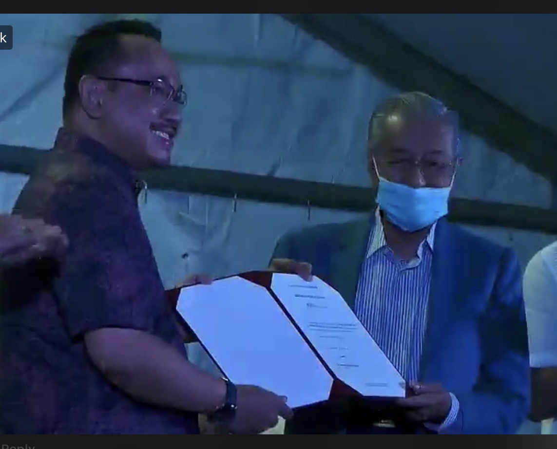 Dalam majlis pengumuman calon pada malam ini (12 Ogos), Dr Mahathir turut menyerahkan Watikah Pelantikan kepada peguam itu.