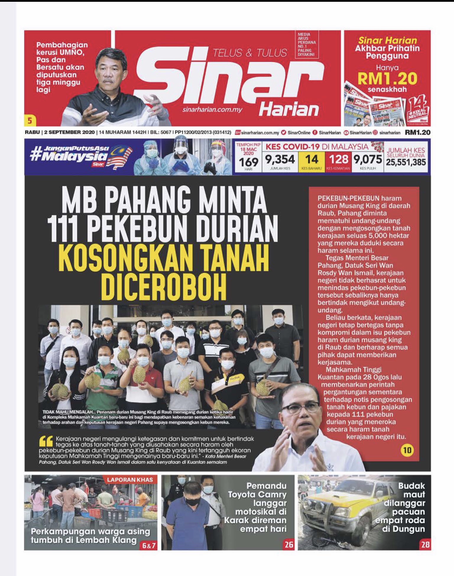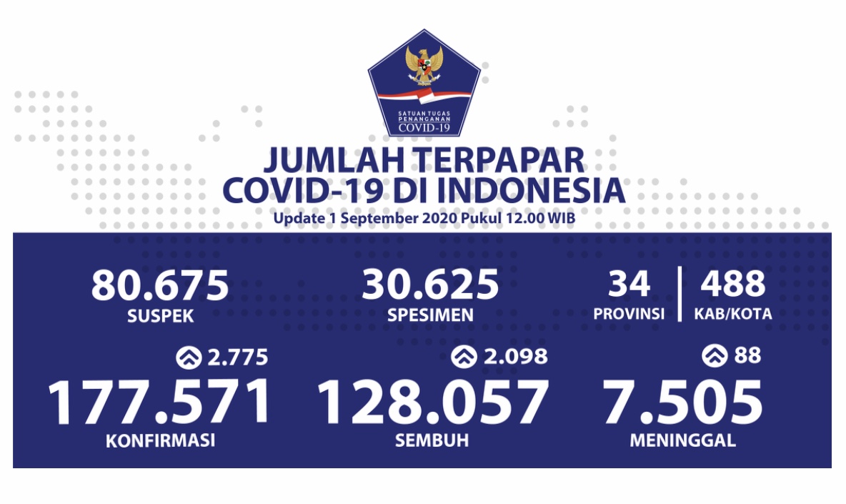 KEMENTERIAN Kesihatan Indonesia melaporkan 2,775 kes baharu dengan jumlah kumulatif meningkat kepada 177,571 kes sementara kes aktif sebanyak 42.009. Daripada jumlah kes baharu itu, Jakarta merekodkan kes tertinggi dengan 901 kes diikuti Jawa Timur 350 kes dan Jawa Barat 215 kes. Bagi kes kematian, sebanyak 88 kes dilaporkan menjadikan jumlah keseluruhan 7,505 kes di mana Jawa Timur 26 kes, Jakarta 17 dan Jawa Tengah dengan 14 kes. Sementara itu kes sembuh harian yang dilaporkan pada 1 September adalah 2,098 kes yang membawa kepada jumlah keseluruhan sembuh sebanyak 128,057. Kes sembuh…