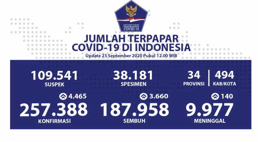 INDONESIA mencatatkan 4,465 kes positif baharu Covid-19 dalam tempoh 24 jam, jumlah tertinggi sehingga kini menjadikan jumlah keseluruhan kes positif kini berjumlah 257,388.