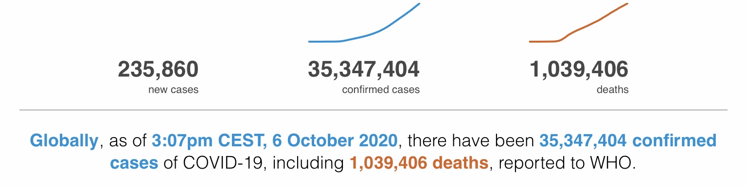 JUMLAH jangkitan global Covid-19 kini mencecah 36.7 juta dengan merekodkan lebih satu juta kematian sementara kes pesakit sembuh pula meningkat kepada 24.8 juta orang.