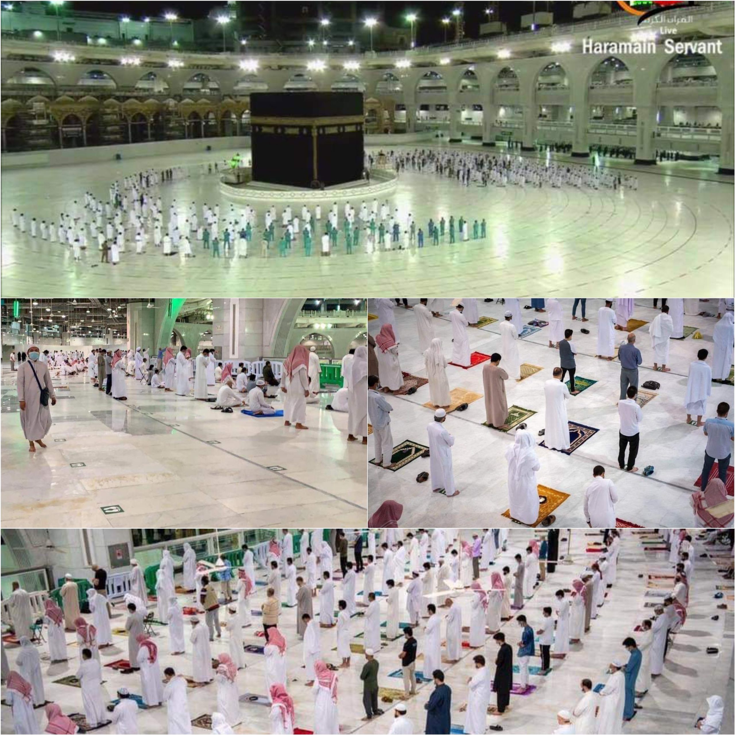 Warganegara dan penduduk di Arab Saudi yang memakai pelitup muka dibenarkan untuk bersolat di dalam Masjidilharam dengan pelaksanaan langkah kesihatan yang ketat.