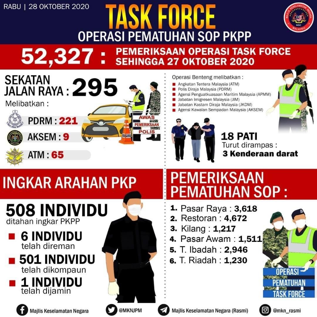 KUALA LUMPUR: Polis DiRaja Malaysia (PDRM) menahan 508 individu di atas kesalahan ingkar arahan Perintah Kawalan Pergerakan Pemulihan (PKPP) yang melibatkan 501 individu dikompaun manakala enam direman dan seorang dijamin. Menteri Kanan (Keselamatan), Ismail Sabri Yaakob berkata, kesalahan itu termasuklah tidak memakai pelitup muka (160), gagal menyediakan butiran diri (113), gagal mengamalkan penjarakan fizikal (97) dan premis beroperasi lebih masa (33). Katanya, Task Force Operasi Pematuhan yang diketuai PDRM telah membuat 52,327 pemeriksaan bagi memantau dan menguatkuasa pematuhan Prosedur Operasi Standard (SOP) PKPP. Sebanyak 3,028 Pasukan Pematuhan yang melibatkan 23,274…