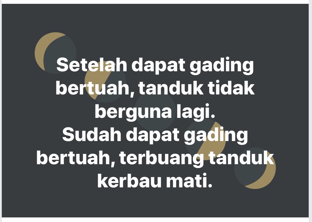 Sudah dapat gading bertuah, terbuang tanduk kerbau mati