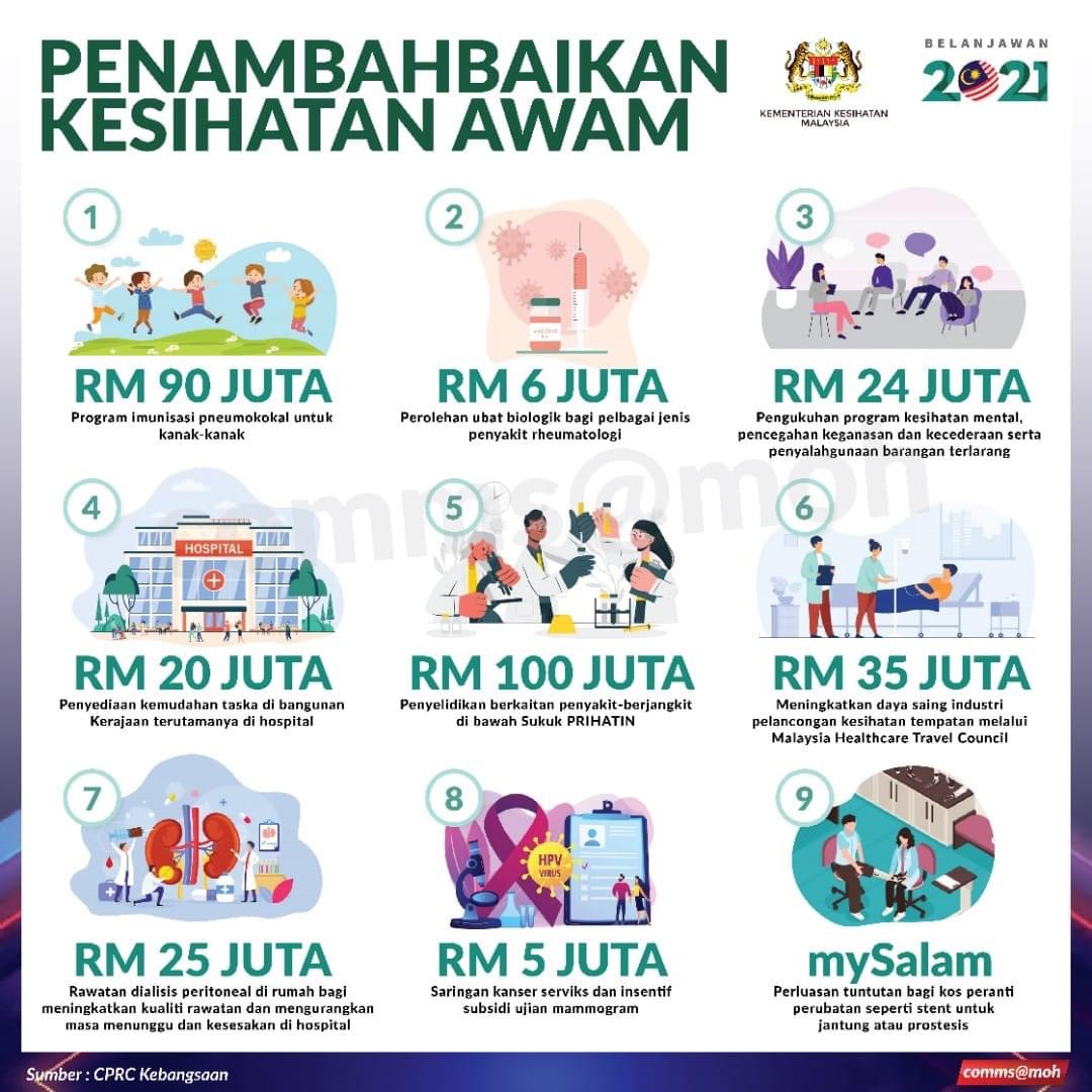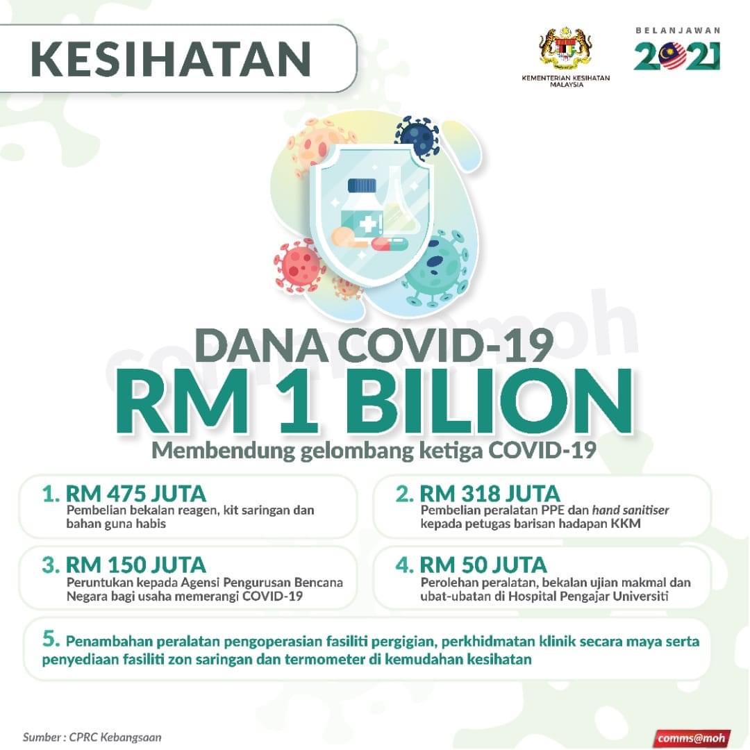 Peruntukan ini tidak termasuk RM1 bilion untuk Dana #COVID19 bagi membendung gelombang ketiga yang sedang melanda negara kita. Sebahagian besar dana ini diperuntukan untuk pembelian kit ujian saringan dan PPE untuk petugas barisan hadapan.