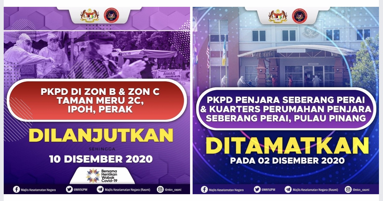 KUALA LUMPUR, 2 Dis — Perintah Kawalan Pergerakan Diperketatkan (PKPD) di Zon B, Zon C Taman Meru 2C Ipoh, Perak dilanjutkan tujuh hari lagi mulai Jumaat ini sehingga 10 Disember , kata Menteri Kanan Pertahanan Ismail Sabri Yaakob.