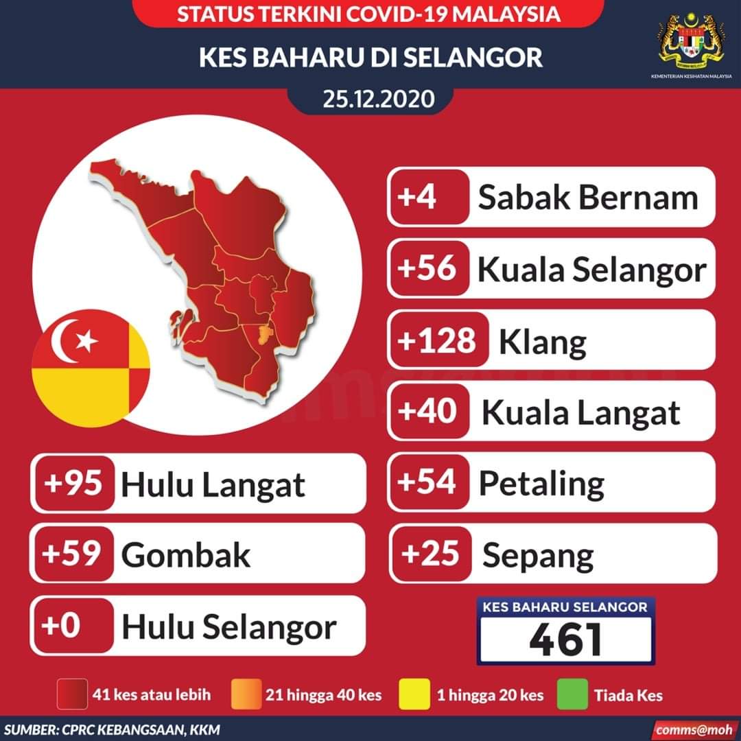 Klang masih mencatatkan kes baharu tertinggi (128) yang kebanyakannya melibatkan saringan kontak rapat (30 saringan kontak dalam kluster dan 52 saringan kontak rapat).
