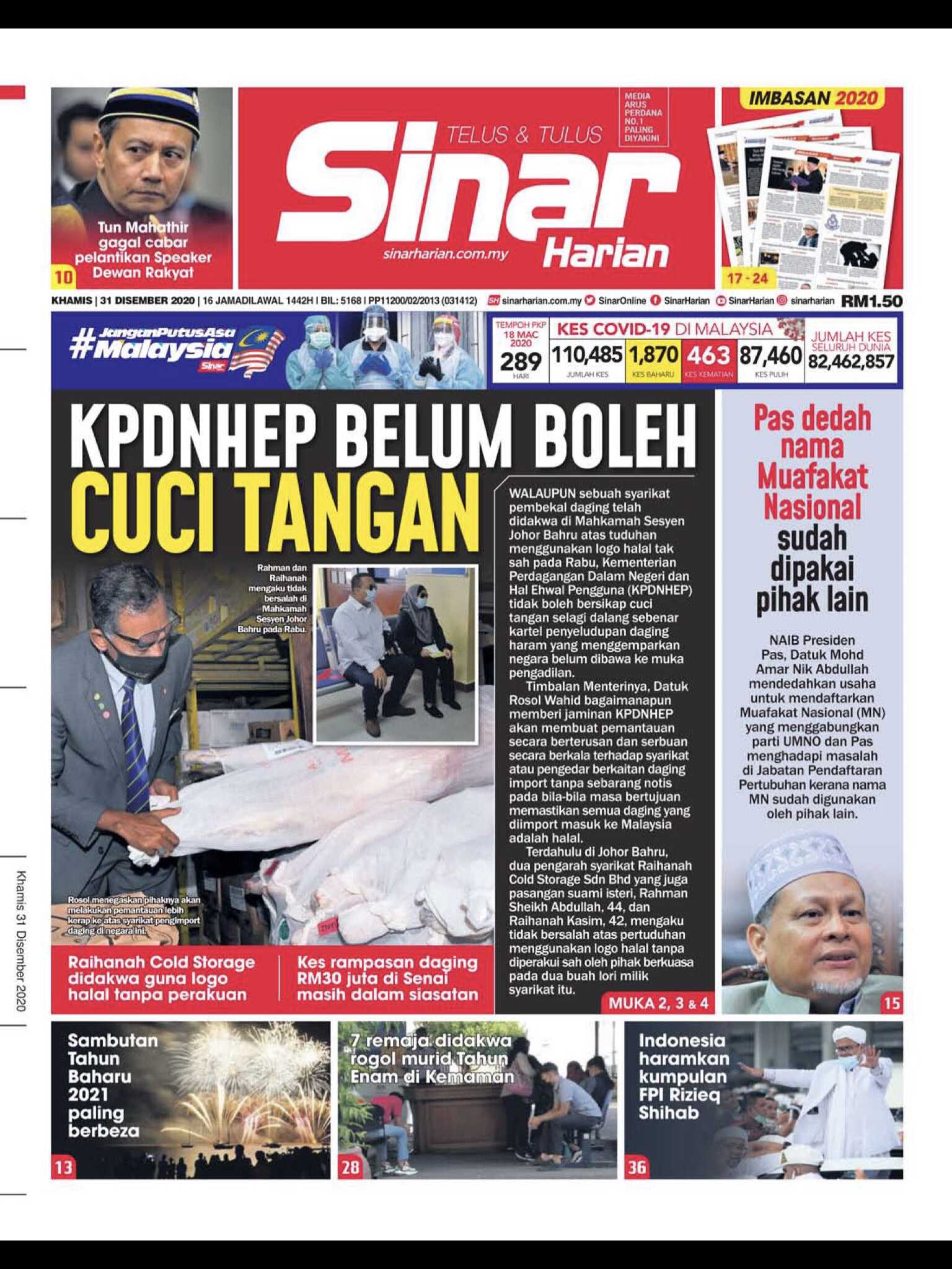 PUTRAJAYA 30 Dis. – Kes jangkitan Covid-19 terus merekodkan empat angka dengan 1,870 kes baharu dilaporkan hari ini di mana Johor buat pertama kalinya melaporkan kes harian tertinggi iaitu 607. Ketua Pengarah Kesihatan Dr Noor Hisham Abdullah berkata ini menjadikan jumlah kes positif mencecah 110, 485 dengan kes aktif meningkat kepada 22,562. “Peningkatan kes di Johor disebabkan oleh kluster berkaitan penjara iaitu Kluster Tembok Choh yang melaporkan sebanyak 374 kes, ini diikuti oleh Selangor sebanyak 472 kes dan Sabah sebanyak 280 kes,” katanya. Beliau juga memaklumkan pandemik itu meragut enam lagi nyawa menjadikan jumlah kumulatif kematian sebanyak 463 kes. Katanya…
