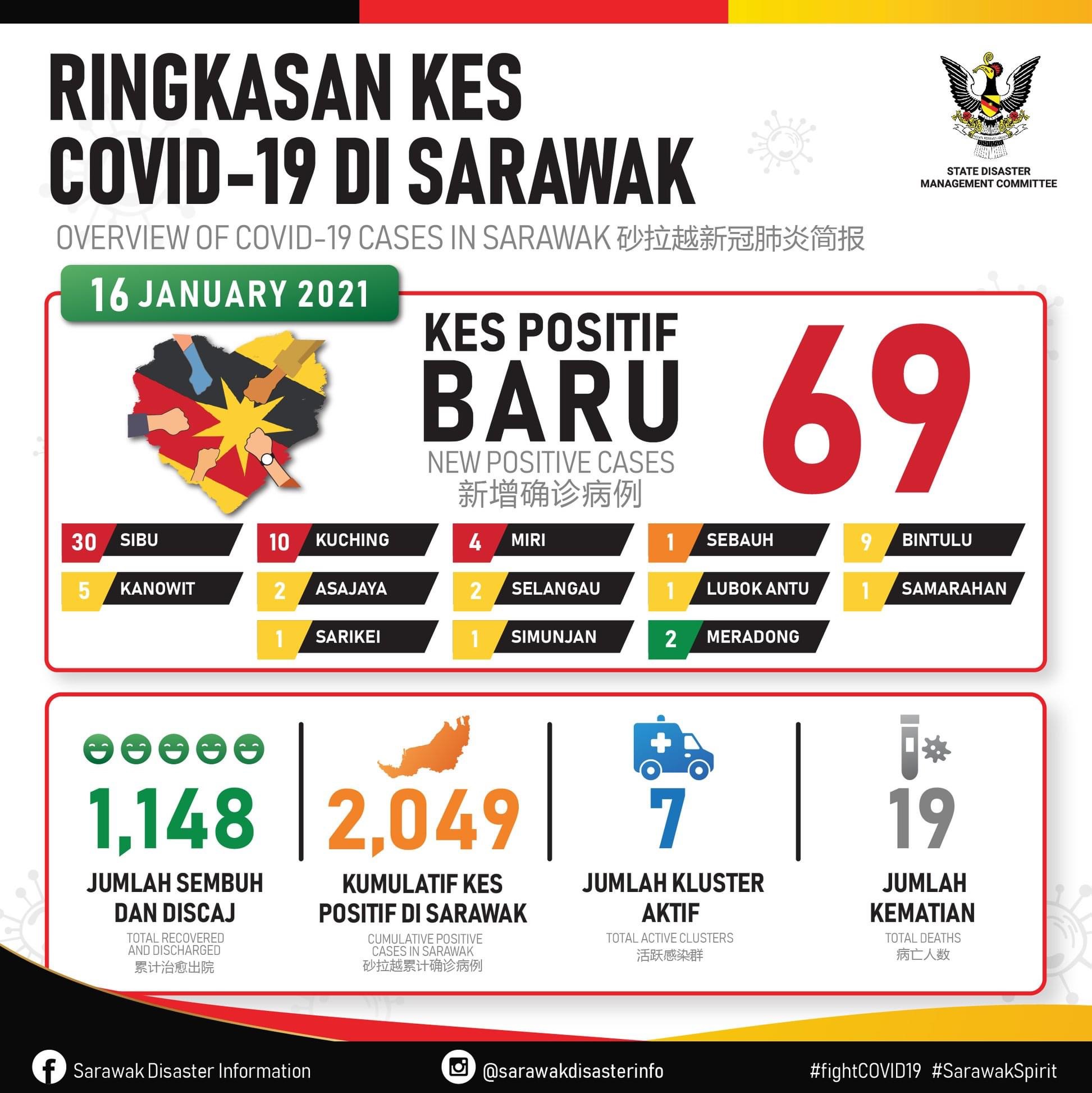 KUCHING 16 Jan. – Sarawak akan melaksanakan Perintah Kawalan Pergerakan Bersyarat (PKPB) di seluruh negeri itu selama 14 hari bermula Isnin ini hingga 31 Januari susulan peningkatan kes Covid-19 di negeri itu sejak beberapa hari lalu. Pengerusi Jawatankuasa Pengurusan Bencana Negeri (JPBN) Sarawak Douglas Uggah Embas berkata arahan PKPB itu tertakluk kepada semua bahagian di Sarawak kecuali Sibu yang kini berada di bawah Perintah Kawalan Pergerakan (PKP) bermula hari ini sehingga 29 Januari . Sebelum ini, Sarawak diletak di bawah PKP Pemulihan (PKPP) susulan pengumuman Perdana Menteri Muhyiddin Yassin pada 11 Januari lepas. Hari ini, Sarawak mencatat 69 kes baharu Covid-19 menjadikan jumlah keseluruhan kes positif Covid-19 di negeri…