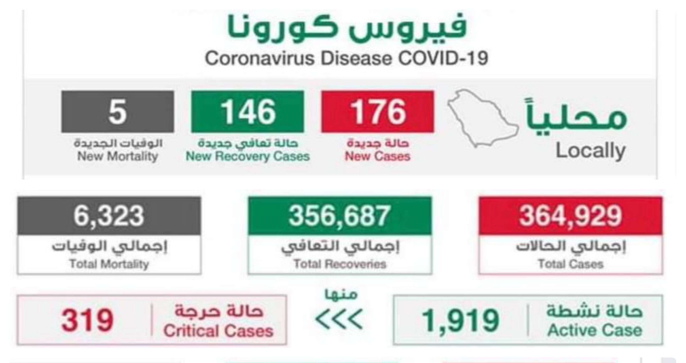 RIYADH 17 Jan. – Ada kenaikan kes Covid-19 di Arab Saudi apabila merekodkan 176 kes jangkitan harian hari ini berbanding 140 semalam dan 173 pada 15 Januari. Menurut Kementerian Kesihatan, jumlah kumulatif kes jangkitan setakat ini adalah 364,929 dengan kes aktif 1,919 di mana 319 kes kritikal. Dalam tempoh 24 jam juga, sebanyak lima pesakit meninggal dunia menjadikan jumlah kumulatif 6,323 kematian. Sebanyak 146 pesakit dilaporkan sembuh menjadikan jumlah mereka yang pulih meningkat kepada 356,687 orang atau 97.74 peratus daripada keseluruhan kes. Sementara itu, Riyadh merekodkan kes harian tertinggi iaitu…