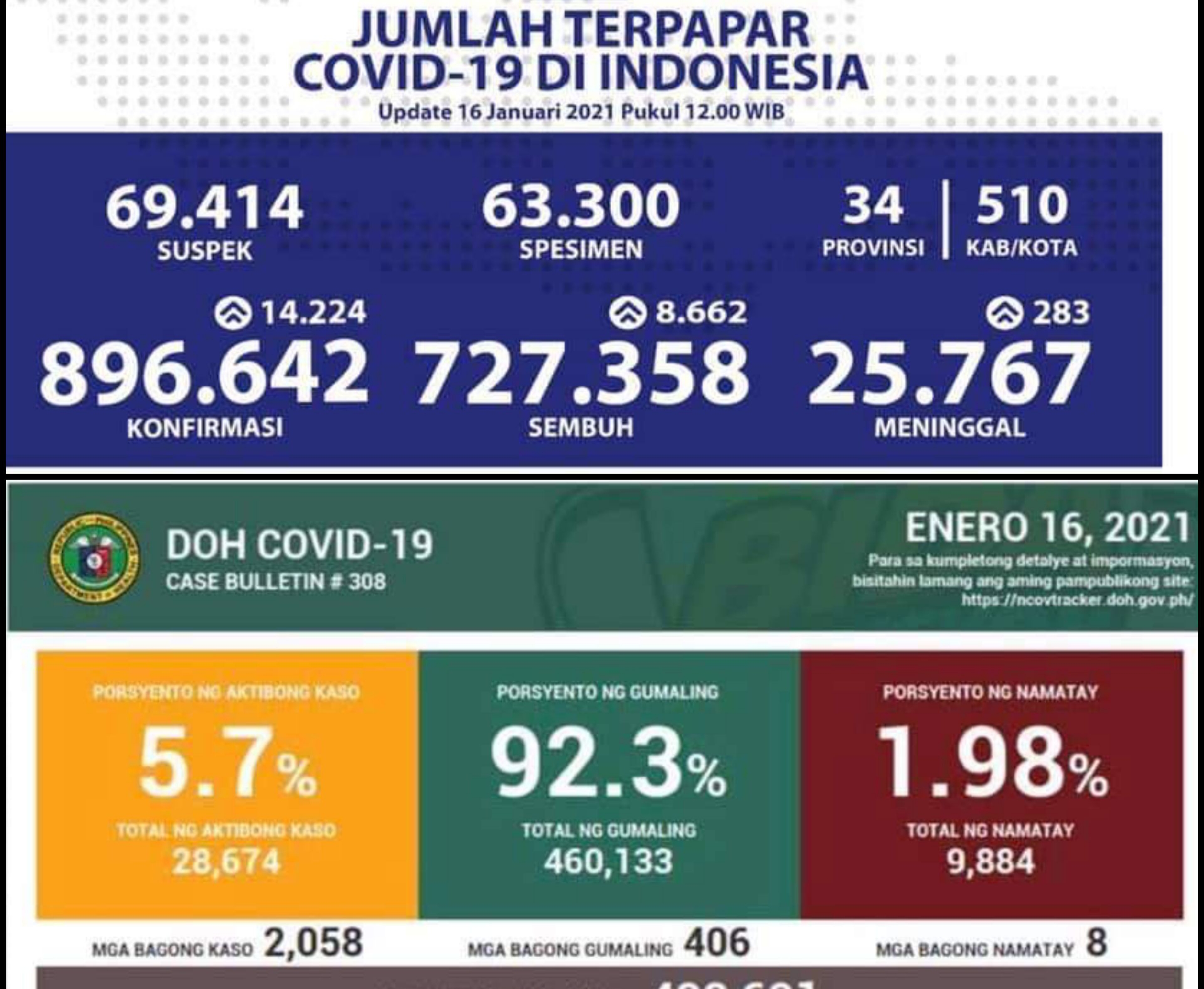 Begitu juga di Filipina, semalam merekodkan 2,058 kes berbanding 12 Januari sebanyak 1,524 kes diikuti 1,453 kemudian naik kepada 1,912 pada 14 Januari dan 2,048 pada 15 Januari.