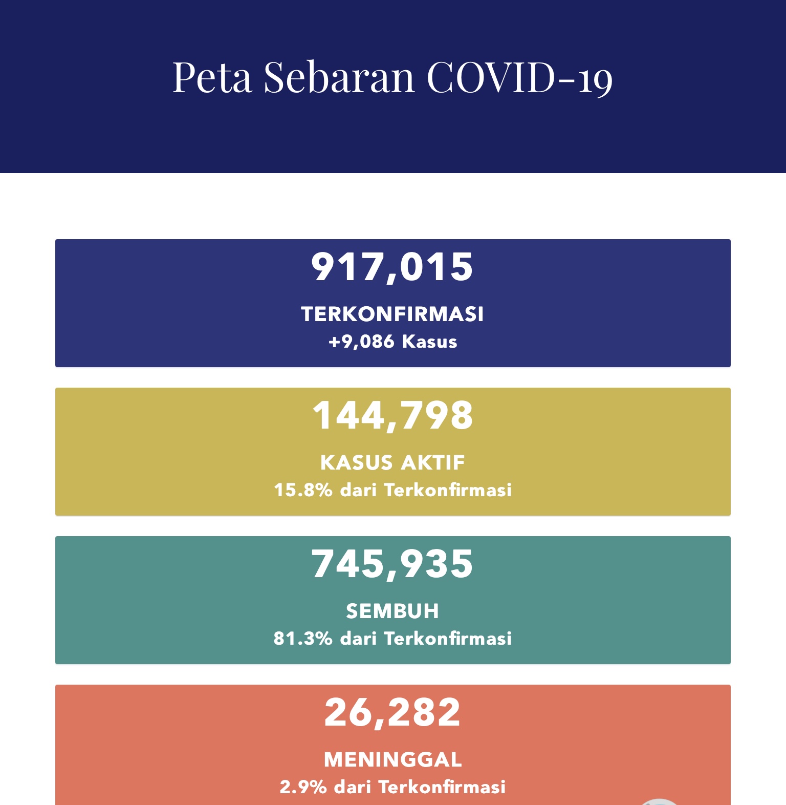 INDONESIA merekodkan 9,086 kes baharu Covid-19 menjadikan jumlah 917,015.