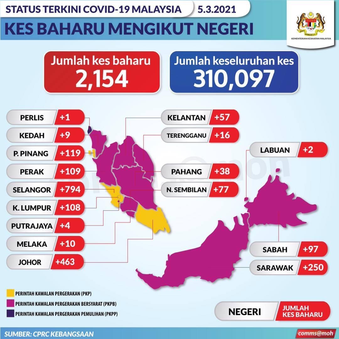JIKA semalam 630 kes, hari ini 5 Mac, SELANGOR menambah kes harian baharu menjadi 794 kes (36.9 peratus), angka tertinggi berbanding negeri-negeri lain.