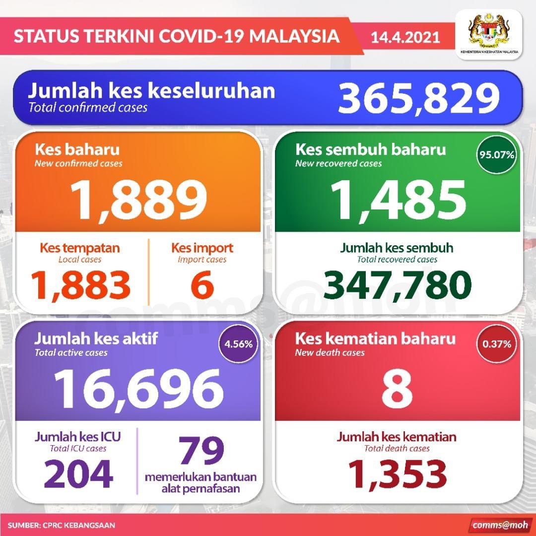 Status terkini COVID-19 setakat 14 April 2021