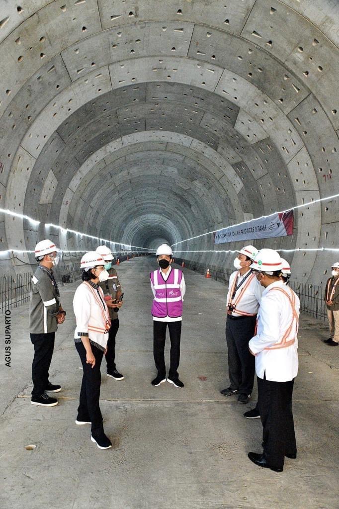 “Terowongan di belakang saya ini melintas di bawah tol Jakarta-Cikampek. Panjangnya 1.885 meter. Dan inilah terowongan yang akan dilalui kereta cepat Jakarta-Bandung (KCJB) yang sedang dibangun.,” katanya.