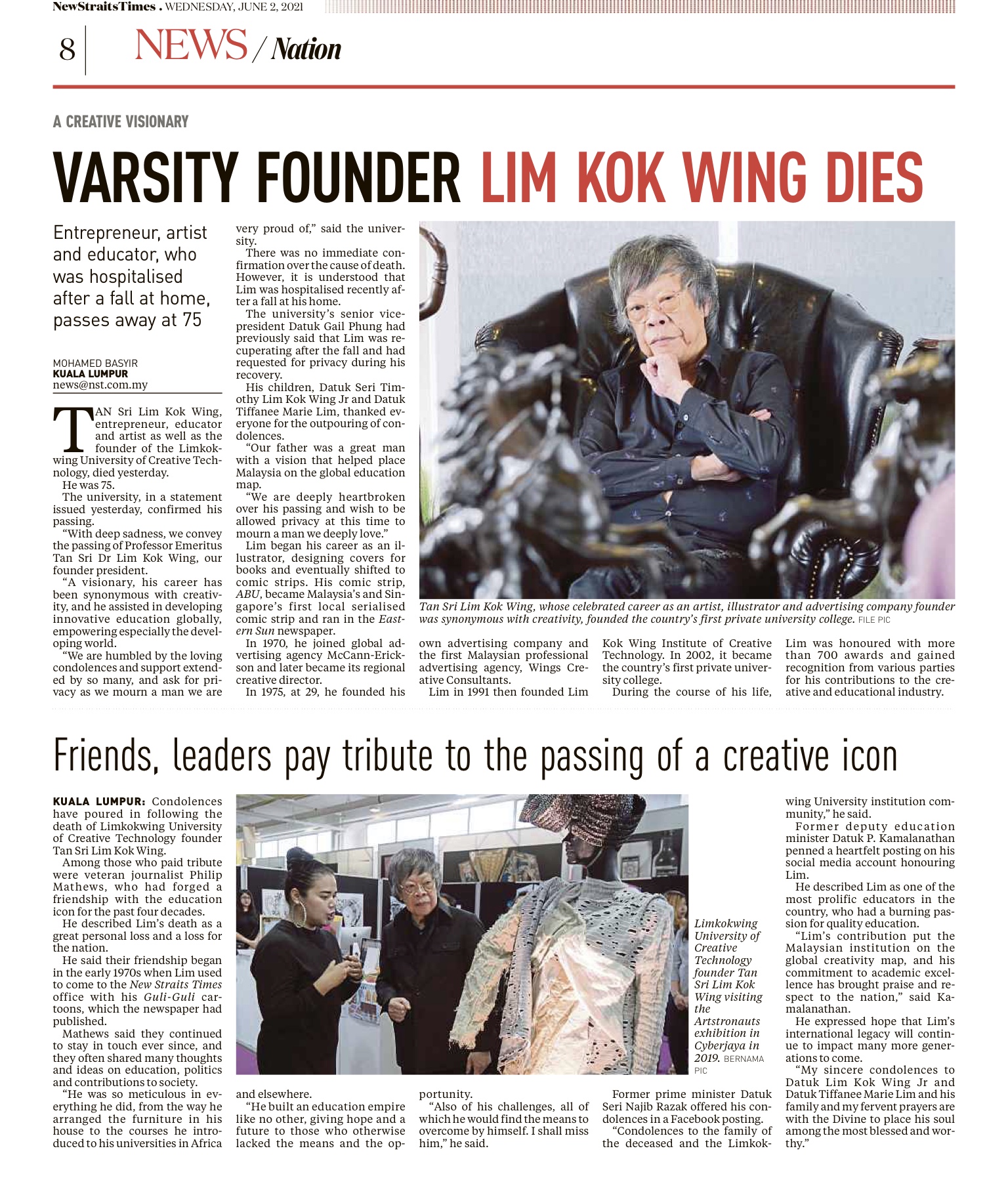 KUALA LUMPUR 2 Jun – Yang di-Pertuan Agong, Al-Sultan Abdullah Ri’ayatuddin Al-Mustafa Billah Shah menzahirkan ucapan takziah kepada seluruh keluarga Tan Sri Lim Kok Wing atas pemergian pengasas dan presiden Universiti Teknologi Kreatif Lim Kok Wing itu.