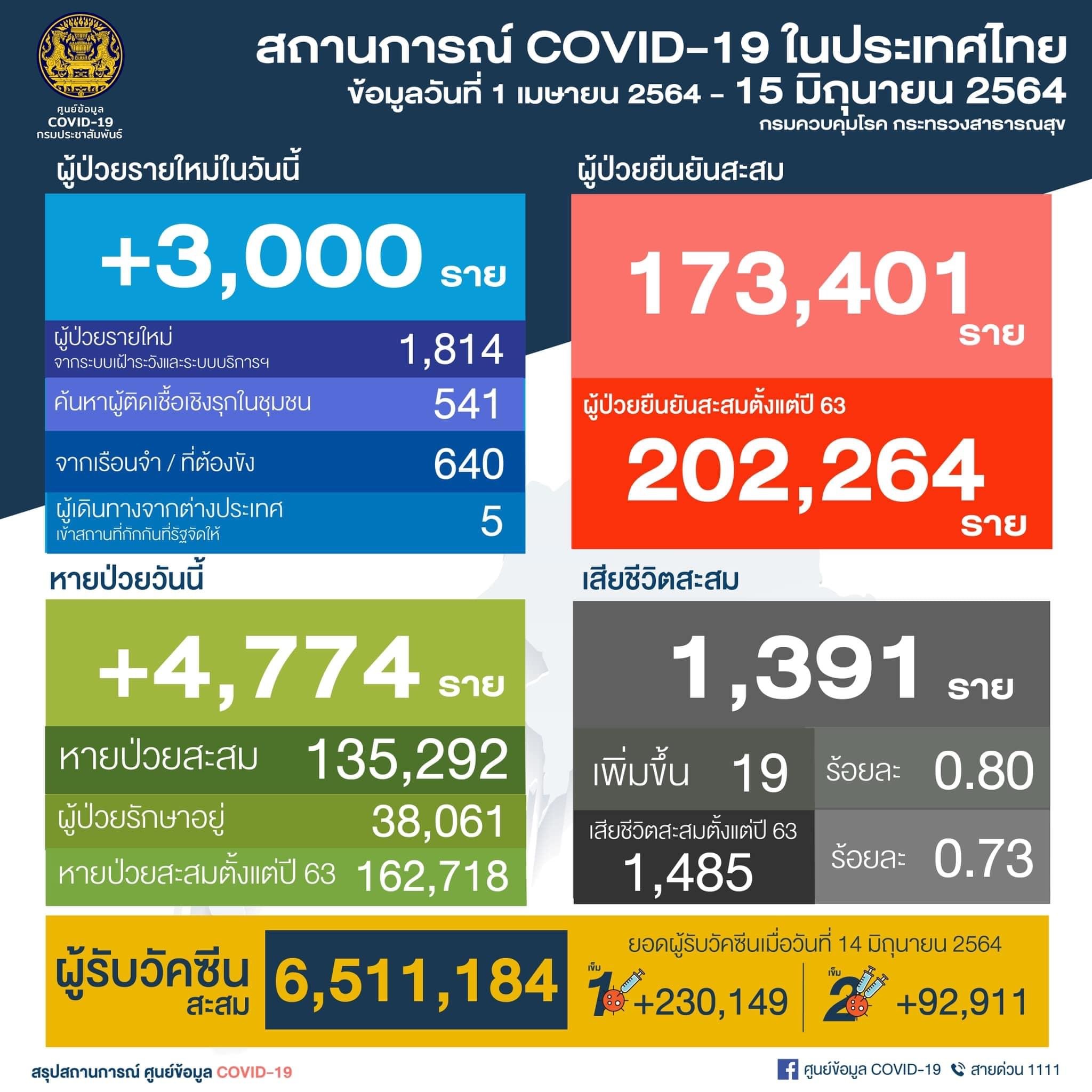 BANGKOK 15 Jun – Thailand akhirnya merekodkan 200,000 kes jangkitan Covid-19 apabila 3,000 kes baharu yang dicatatkan hari ini menjadikan jumlah keseluruhan meningkat kepada 202,264 kes.