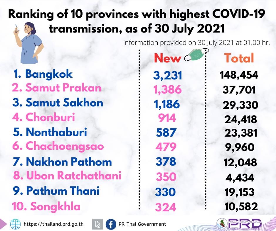 Samut Sakhon 1,186, Chon Burii 914 dan Nonthaburi 587.