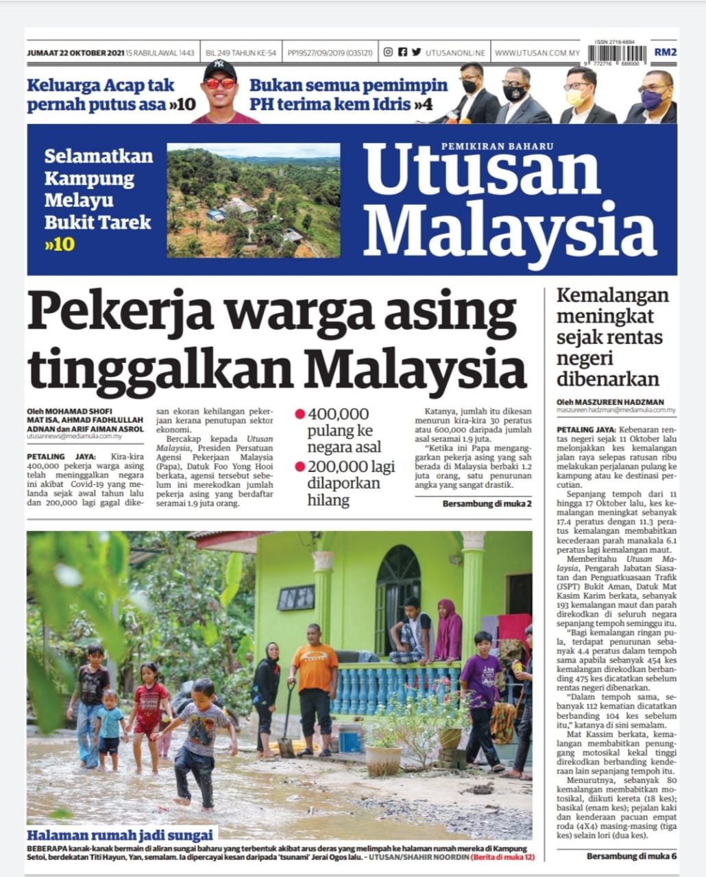 PUTRAJAYA 22 Okt. – Jumlah kematian harian akibat jangkitan Covid-19 di negara ini terus kekal di bawah 100 apabila 96 kes direkodkan semalam termasuk 21 kes membabitkan kematian di luar fasiliti kesihatan (BID). Data Kementerian Kesihatan di portal COVIDNOW menunjukkan setakat semalam, jumlah keseluruhan kematian akibat Covid-19 mencecah 28,234 atau kira-kira 1.2 peratus daripada keseluruhan 2,408,431 kes positif di Malaysia. Jumlah keseluruhan kes BID pula meningkat kepada 5,701, iaitu kira-kira 20 peratus daripada keseluruhan korban akibat Covid-19. Sementara itu, jumlah kemasukan pesakit Covid-19 ke unit rawatan rapi (ICU) terus mencatat…