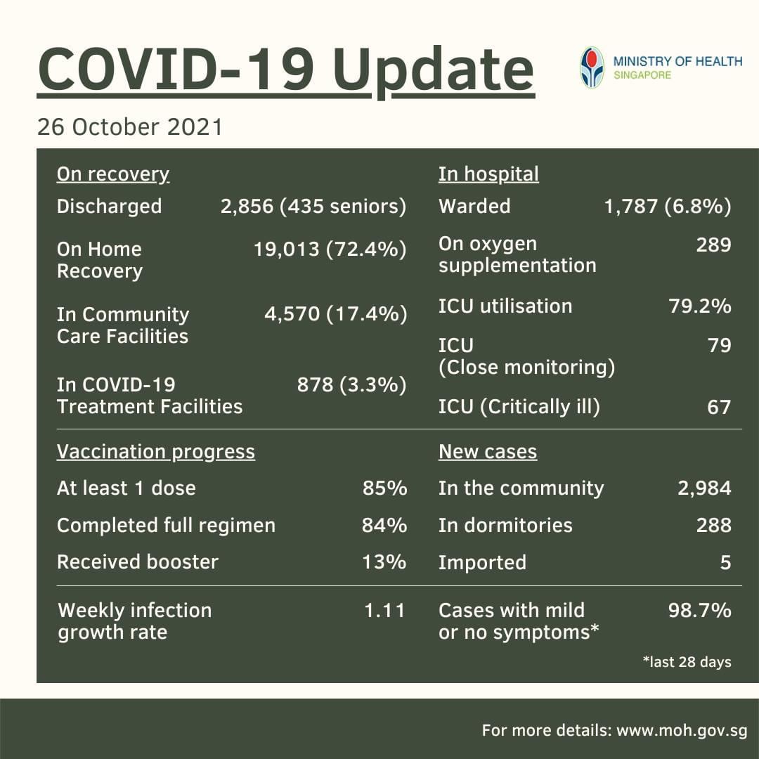 Dalam kalangan kes baharu itu, 3,272 adalah kes jangkitan dalam negeri, merangkumi 2,984 kes dalam masyarakat dan 288 kes di asrama pekerja asing, sementara lima lagi merupakan kes import.