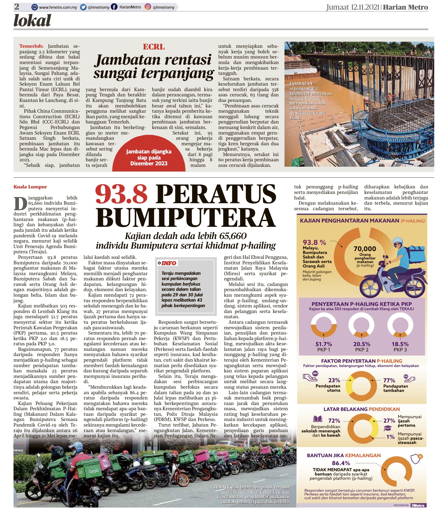 PUTRAJAYA 12 Nov. – Pemberian vaksin penggalak Covid-19 diperluaskan kepada individu berusia 18 tahun ke atas dan mempunyai komorbiditi, ibu mengandung, individu berusia 40 tahun ke atas dan petugas barisan hadapan selain petugas kesihatan. Ketua Pengarah Kesihatan, Dr Noor Hisham Abdullah, berkata Panel Pakar Perubatan Kementerian Kesihatan (KKM) sudah meneliti keberkesanan serta keselamatan dos penggalak daripada pelbagai sumber. Hasilnya mendapati satu dos penggalak mampu meningkatkan tahap imuniti terhadap Covid-19. KKM akan terus memantau perkembangan Covid-19 dari semasa ke semasa dan pada masa sama akan meneruskan Program Imunisasi Covid-19 Kebangsaan (PICK)…