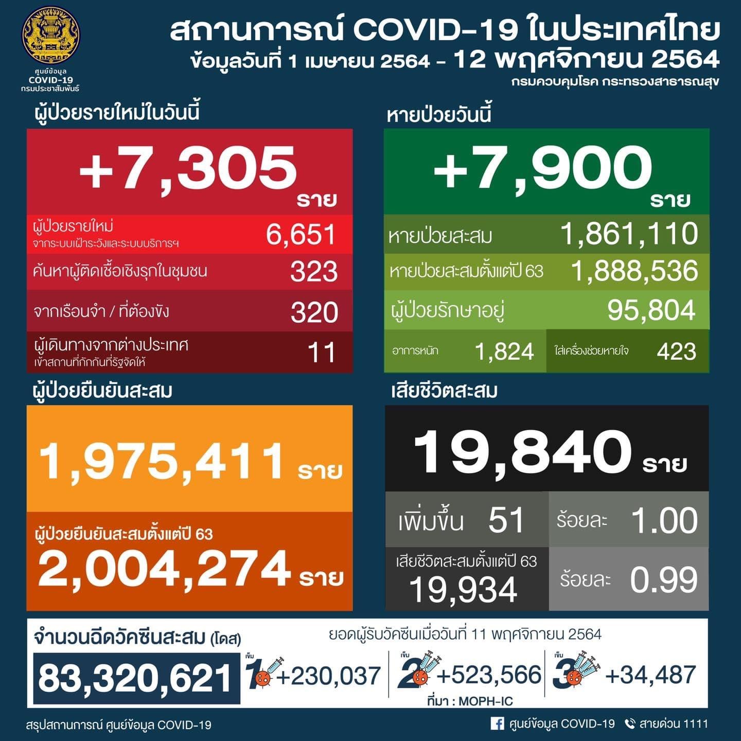 BANGKOK 12 Nov. – Thailand menjadi negara keempat di rantau ASEAN yang merekodkan kes keseluruhan Covid-19 lebih 2 juta orang apabila 7,305 lagi kes baharu dilaporkan hari ini yang membawa kepada 2,004,274 kes. Ketika ini Indonesia mendahului dengan merekodkan 4,250,157 kes diikuti Filipina 2,813,115 dan Malaysia 2,535,338 kes manakala Vietnam 1,000,897. Kementerian Kesihatan Awam Thailand melaporkan kes harian turun sebanyak 191 kes berbanding sebelumnya sementara jumlah kematian pula 51 orang, kurang enam berbanding sebelumnya menjadikan jumlah keseluruhan 19,934 kematian. Kes harian hari ini meliputi 7,294 kes jangkitan tempatan iaitu 6,651…