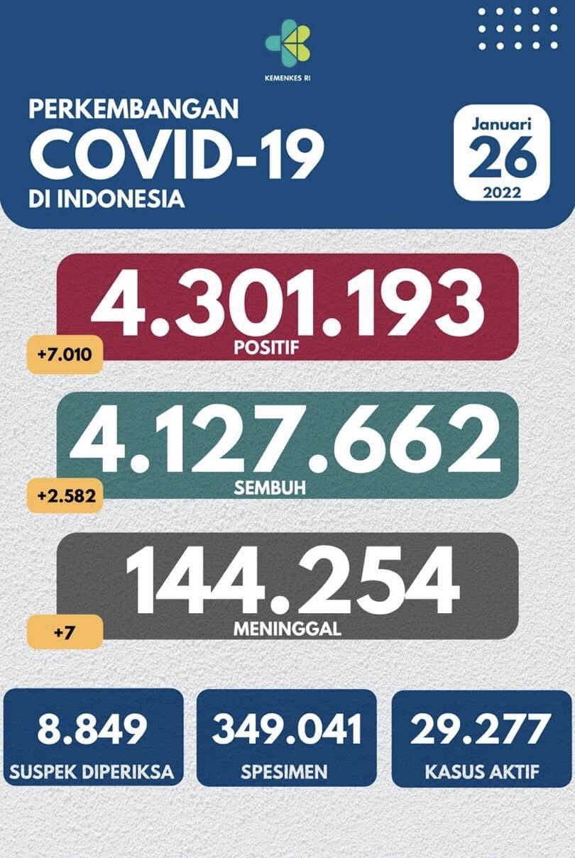 JAKARTA 26 Jan. – Indonesia merekodkan lonjakan kes harian baharu Covid-19 hari ini apabila merekodkan 7,010 kes baharu dalam tempoh 24 jam, berbanding 4,878 kes yang direkodkan semalam. Bagaimanapun jumlah pesakit yang meninggal dunia berkurangan apabila tujuh kematian baharu direkodkan berbanding semalam yang mencatatkan 20 kematian. Dengan perkembangan ini jumlah keseluruhan kes di Indonesia kini meningkat kepada 4,301,193 dengan kematian pula sebanyak 144,254 orang. Sementara itu, Jakarta merekodkan kes harian tertinggi sebanyak 3,509, disusuli Jawa Barat dengan 1,619, dan Banten 1,133 kes. Bagi kes sembuh pula, sebanyak 2,582 lagi pesakit…