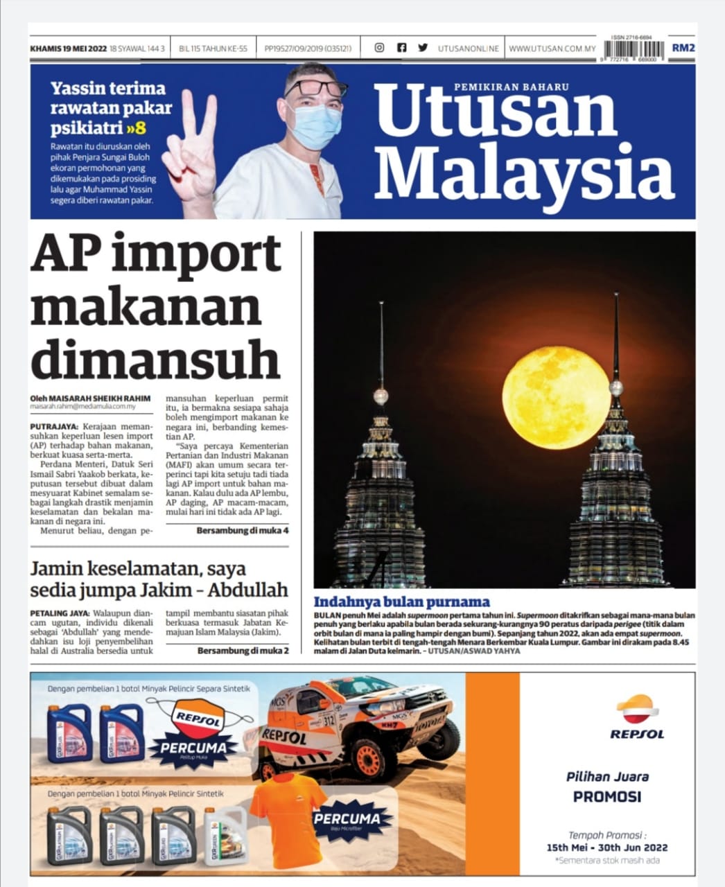 SINGAPURA 19 Mei – Kementerian Kesihatan (MoH) melaporkan 4,578 kes baharu Covid-19 di Singapura setakat pukul 12 tengah hari ini yang melibatkan 4,471 jangkitan tempatan dan 107 kes import. Jumlah tersebut menunjukkan pengurangan berbanding 6,442 kes semalam yang membawa kepada jumlah keseluruhan 1,258,691. Dalam tempoh yang sama, dua lagi kematian akibat Covid-19 dilaporkan hari ini yang membawa kepada jumlah keseluruhan 1,371 orang meninggal dunia setakat semalam. Sementara itu, kes baharu Protokol 2 melibatkan 4,099 orang iaitu pesakit yang sihat tetapi diuji positif ART atau dinilai oleh doktor sebagai mengalami gejala…