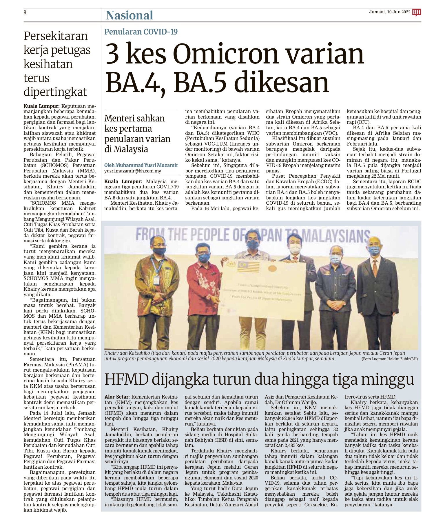 PUTRAJAYA 10 Jun – Jumlah kes harian Covid-19 semalam menunjukkan peningkatan dengan merekodkan 1,887 kes berbanding 1,518 kelmarin dan 1,128 pada hari sebelumnya. Daripada jumlah kes baharu itu, lapan adalah kes import menjadikan jumlah keseluruhan meningkat kepada 4,520,852. Tiga lagi kematian direkodkan menjadikan jumlah keseluruhan 35,708 meninggal dunia. Menurut data di portal COVIDNOW, jumlah kes aktif pula sebanyak 22,074 di mana 21,074 sedang menjalani kuarantin di rumah. Sementara itu Selangor terus merekodkan kes harian tertinggi dengan 776 kes berbanding 564 kelmarin menjadikan jumlah keseluruhan 1,372,500 diikuti Wilayah Persekutuan Kuala Lumpur…