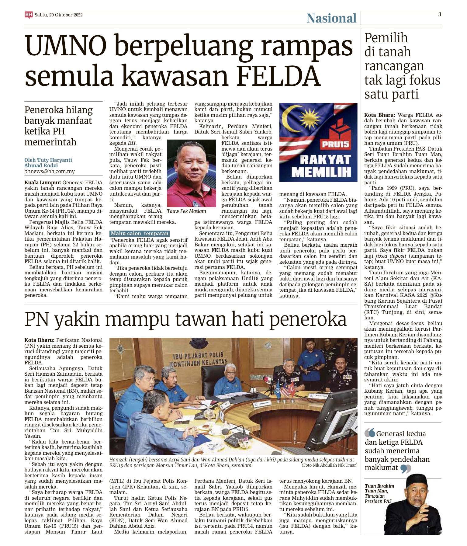 KUALA LUMPUR 29 Okt. – Tiga lagi kerusi PKR yang belum diisi akan dimuktamad dalam beberapa hari ini sama ada akan diberikan kepada Parti Sosialis Malaysia (PSM) dan Muda untuk ditandingi dalam Pilihan Raya Umum ke-15 (PRU15) ini. Timbalan Presiden PKR, Rafizi Ramli, berkata tiga kerusi yang masih memerlukan rundingan lanjut itu adalah Parlimen Sungai Siput dan Tapah di Perak dan Sembrong.di Johor. “Kerusi ini diperuntukkan kepada PKR, tetapi memandangkan ia sudah diminta Muda atau PSM, kita akan runding sebelum dimuktamadkan dalam beberapa hari ini,” katanya selepas Majlis Pengumuman Calon…
