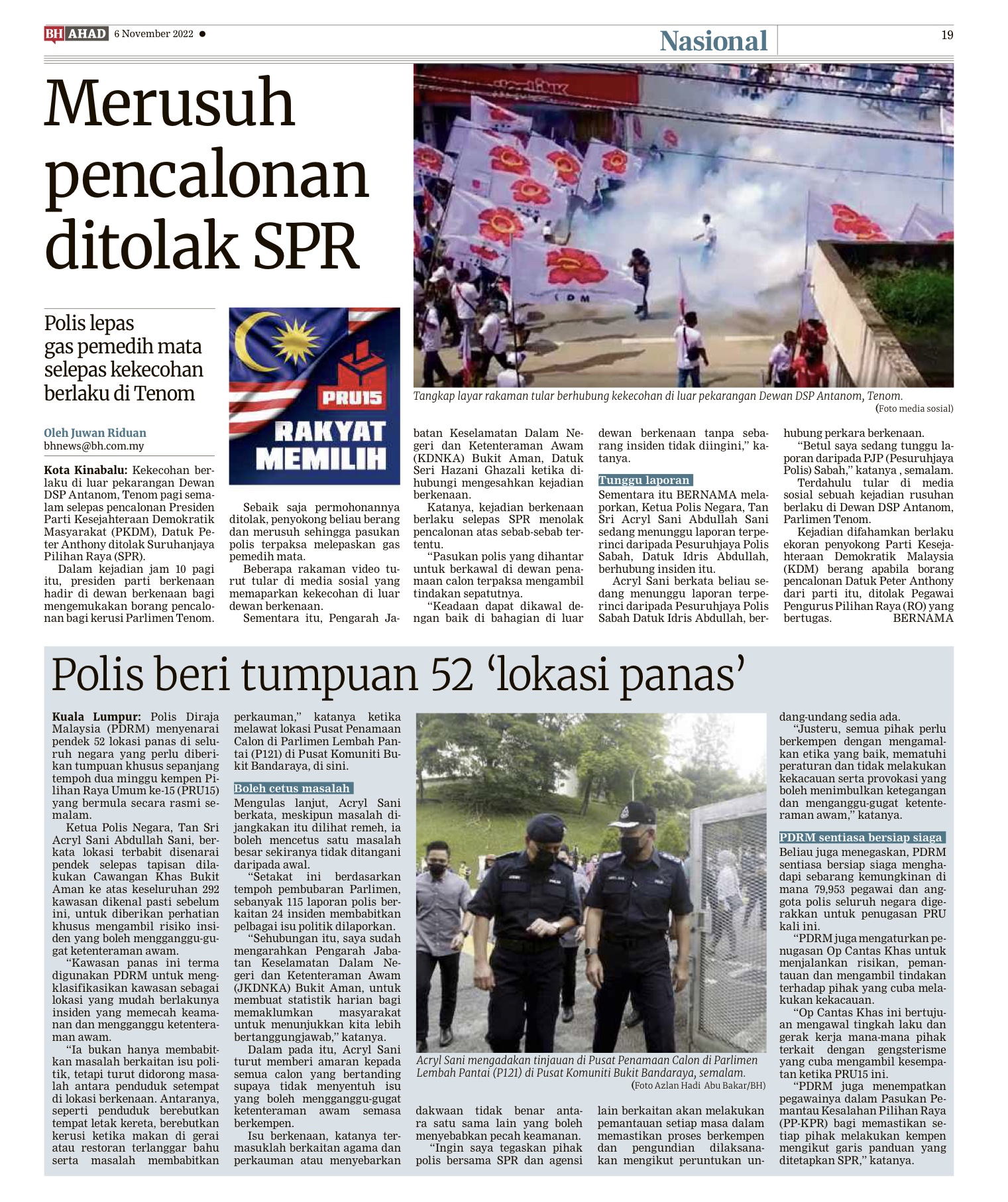 BERA 6 Nov. – Perdana Menteri, Ismail Sabri Yaakob hari ini meluangkan masa mengunjungi Pasar Sehari Kerayong, di sini, sebagai salah satu program kempen pilihan raya selepas penamaan calon semalam. Kunjungan calon Pilihan Raya Umum Ke-15 (PRU15) bagi Parlimen P090 Bera itu mendapat perhatian para peniaga dan pengunjung. Mereka mengambil kesempatan bermesra dengan beliau yang turut diiringi calon Barisan Nasional (BN) bagi DUN N37 Guai, Datuk Sabariah Saidin. Pada masa yang sama, beliau juga bertembung dengan calon Pakatan Harapan bagi kerusi Parlimen Bera, Abas Awang yang turut berkempen di lokasi…