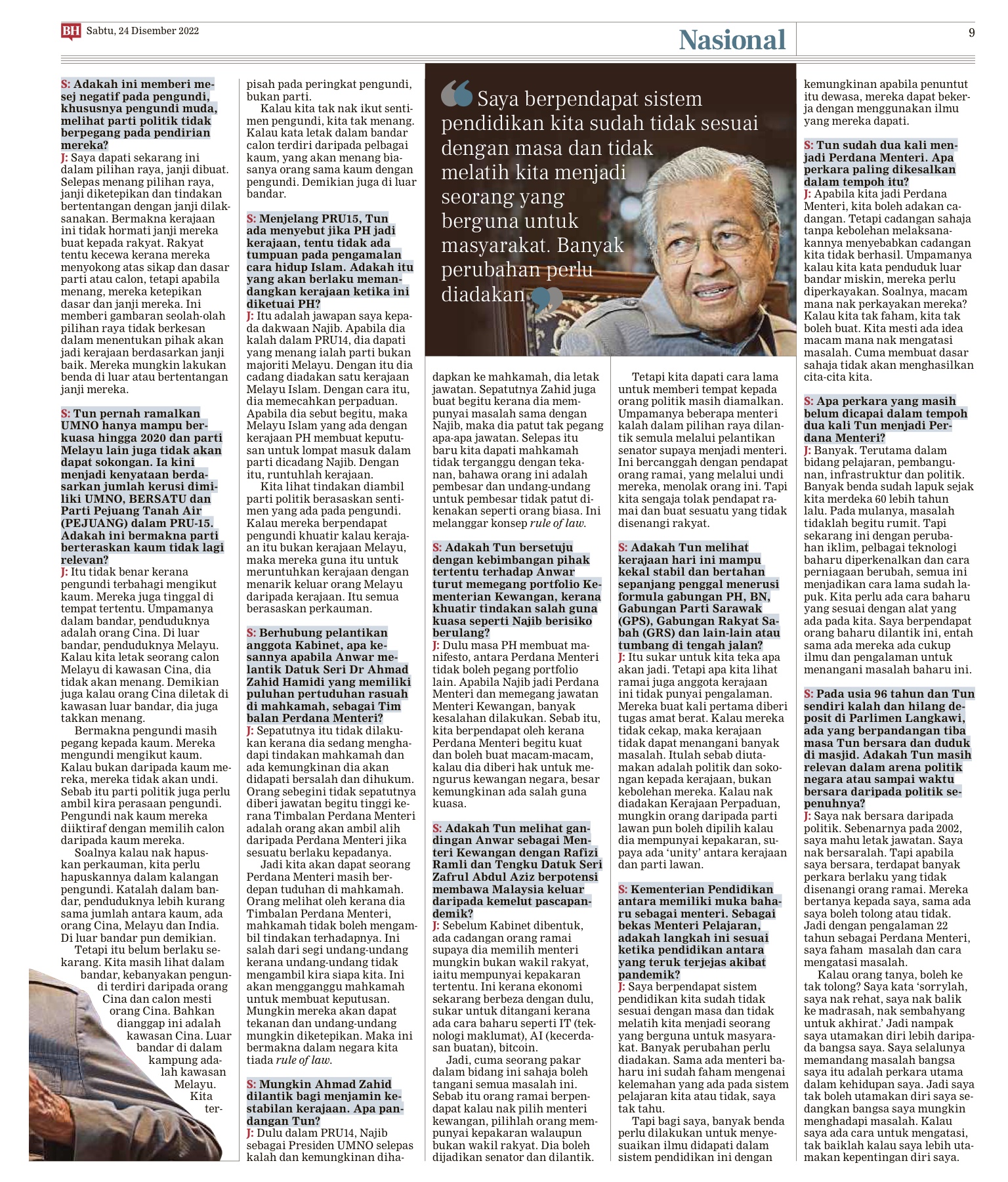 “Jadi kita akan dapat seorang Perdana Menteri masih berdepan tuduhan di mahkamah. Orang melihat oleh kerana dia Timbalan Perdana Menteri mahkamah tidak boleh mengambil tindakan terhadapnya. Ini salah dari segi undang-undang kerana undang-undang tidak mengambil kira siapa kita,’ katanya.