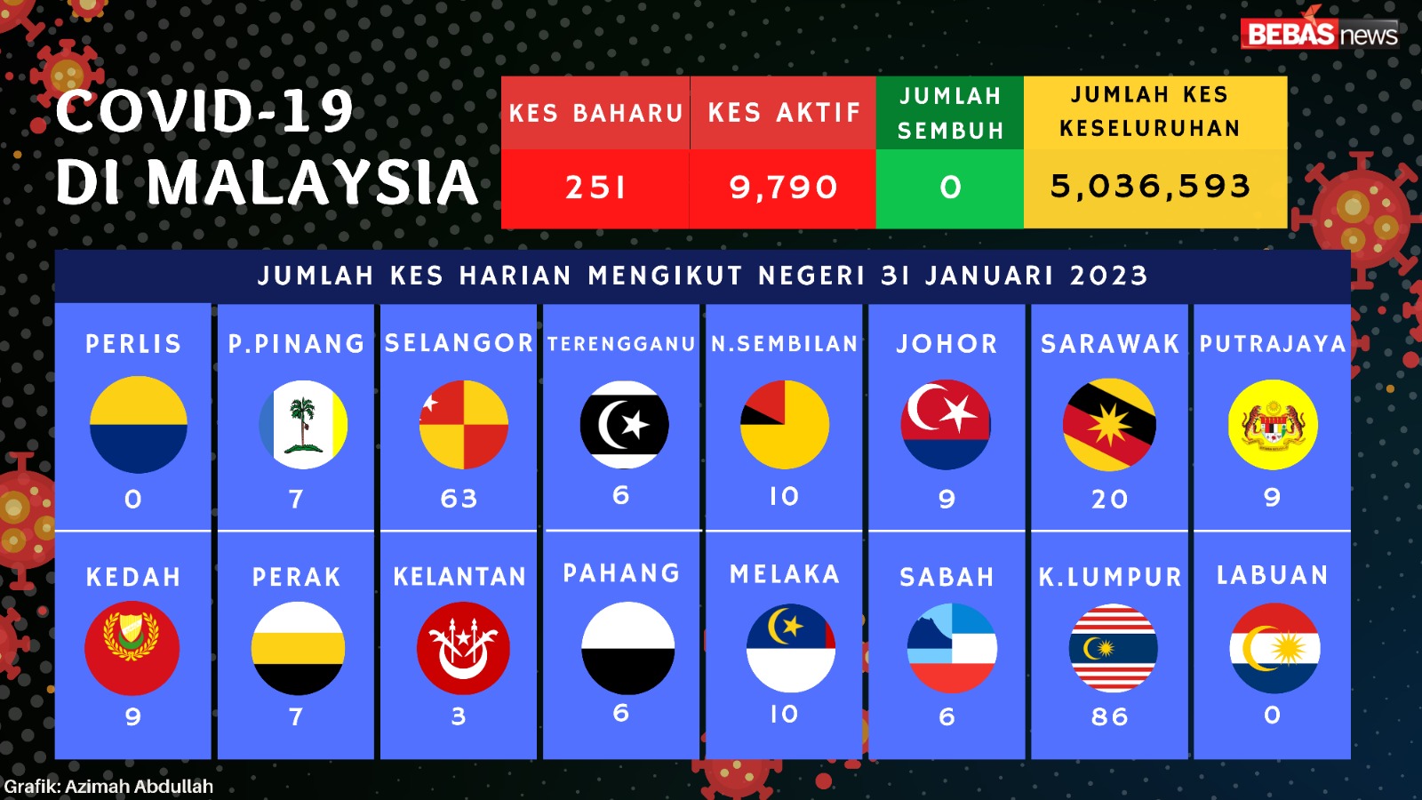 PUTRAJAYA 1 Feb. – Jumlah kes jangkitan harian Covid-19 di negara ini semalam meningkat kepada 251 kes berbanding 198 kelmarin menjadikan jumlah keseluruhan 5,036,593.