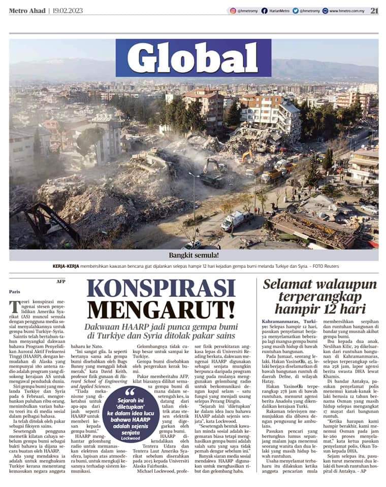 ANTAKYA: Selepas 13 hari, jumlah korban gempa bumi yang melanda Turkiye dan Syria meningkat kepada lebih 45,000 orang dan dijangka meningkat berikutan kira-kira 264,000 pangsapuri di Turkiye musnah dan masih ramai lagi hilang. Menurut laporan media, angka kematian di Turkiye disahkan berjumlah 39,672, manakala di negara jiran Syria pula dilaporkan lebih 5,800 kematian selepas kedua-dua negara digegarkan dengan bencana itu pada 6 Februari lalu. Walaupun kebanyakan pasukan penyelamat antarabangsa sudah meninggalkan zon gempa yang luas, pasukan tempatan masih meneruskan usaha mencari melalui bangunan yang runtuh, hari ini dengan harapan untuk…