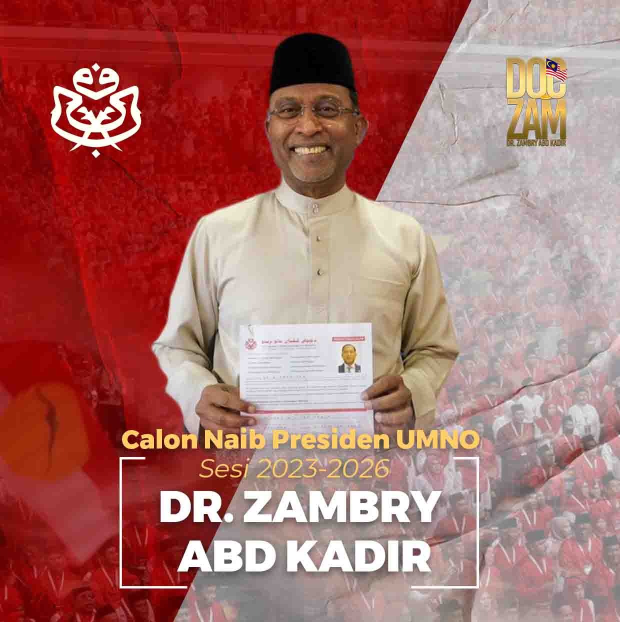 KUALA LUMPUR 24 Feb. – Ahli Majlis Kerja Tertinggi (MKT) UMNO, Dr Zambry Abdul Kadir menyertai saingan bagi perebutan jawatan Naib Presiden UMNO pada Mac ini untuk terus melaksanakan tugas demi parti tercinta. “Saya dengan ini memohon sokongan, dokongan daripada sahabat-sahabat sekalian untuk saya melaksanakan tugas ini,” katanya dalam satu hantaran video melalui Facebooknya. Dr Zambry yang juga Menteri Luar menyerahkan borang pencalonan di Menara Dato’ Onn pada Jumaat, sekaligus menepati ramalan bahawa beliau akan menyertai saingan bagi jawatan No. 3 parti itu. Setakat ini, tujuh orang termasuk dua penyandang…