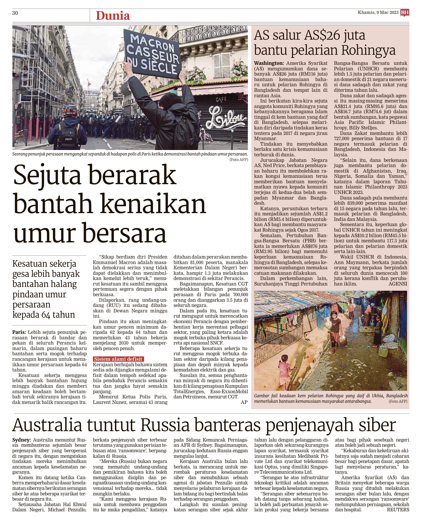 PUTRAJAYA 9 Mac – Bekas Perdana Menteri, Tan Sri Muhyiddin Yassin akan menjawab tujuh pertuduhan terhadapnya di mahkamah. Sambil menegaskan bahawa beliau tidak bersalah, Presiden Bersatu itu mendakwa pertuduhan yang dikenakan ke atasnya adalah bertujuan untuk memalukannya. Pengerusi Perikatan Nasional (PN) itu berkata, pendakwaan terpilih ke atas dirinya ini adalah satu tindakan politik berniat jahat yang bertujuan untuk melumpuhkan dan menghancurkan Bersatu dan PN. “Perdana Menteri (Datuk Seri Anwar Ibrahim) tahu bahawa PN mendapat sokongan padu daripada rakyat terutamanya orang Melayu dan Bumiputera dan akan menang besar dalam enam pilihan raya…
