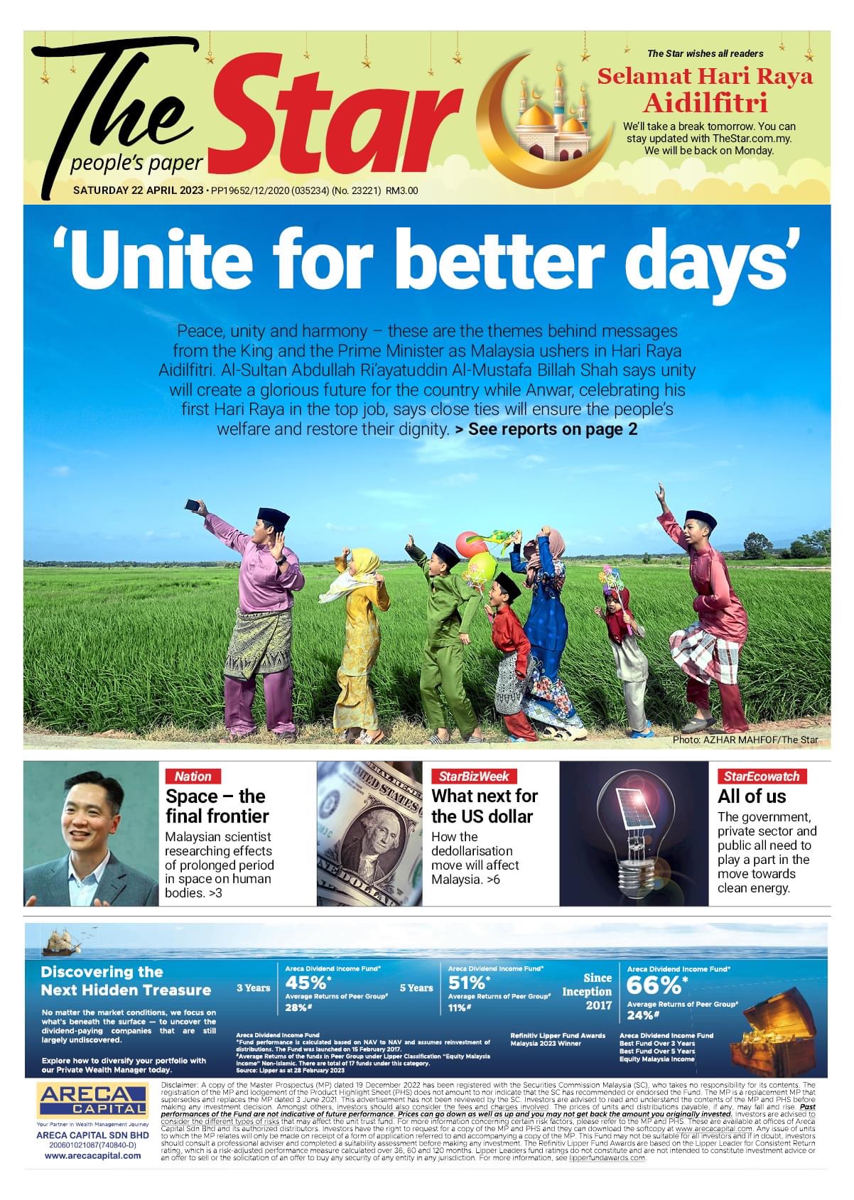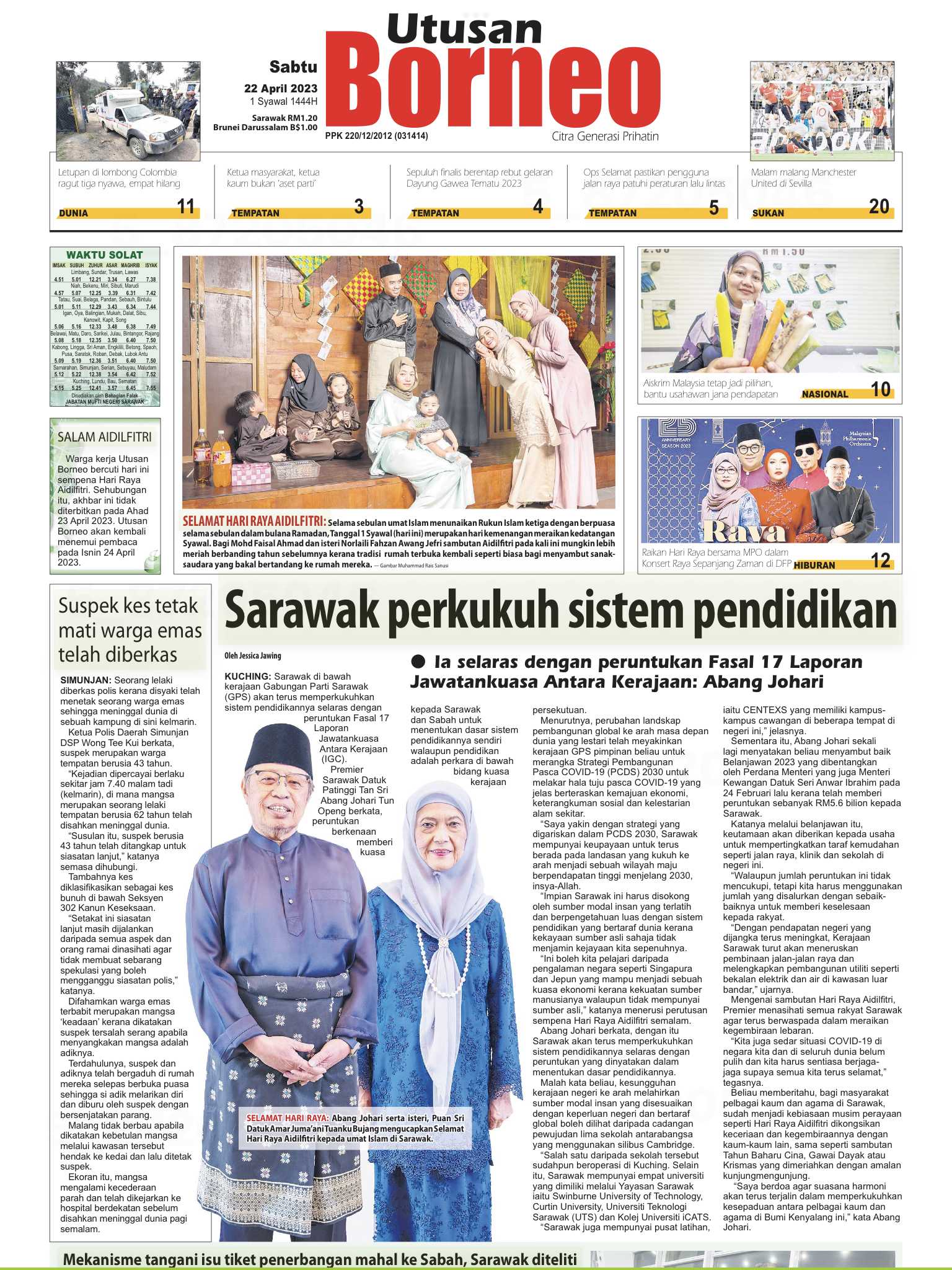 Media Hari Ini Sabtu 22.04.2023 22/04/202322/04/2023 Hassan Mohd. Noor Surat khabar lain hanya akan kembali pada Isnin ini sempena cuti Hari Raya Aidilfitri.