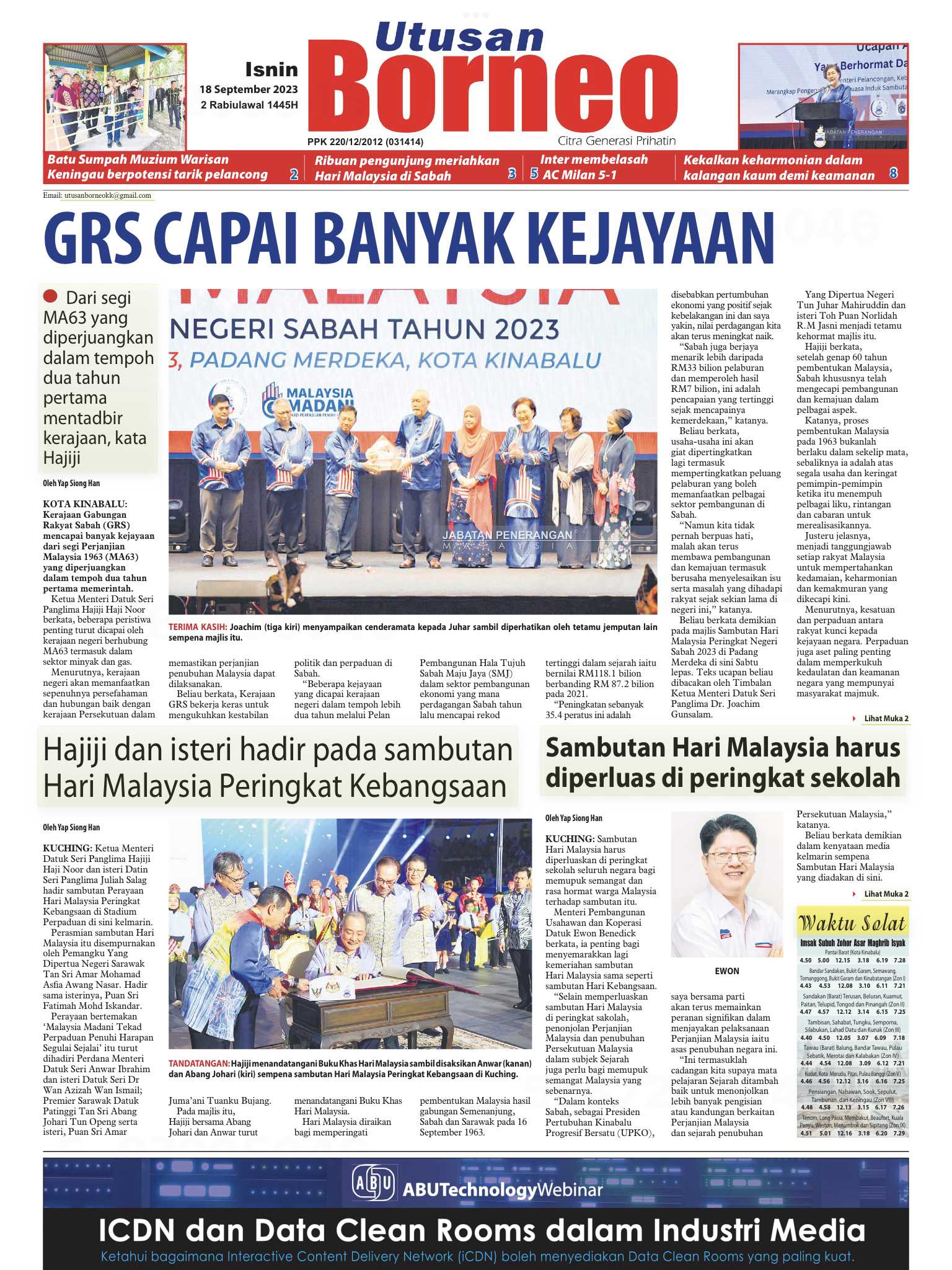 Media Hari Ini Isnin 18.09.2023