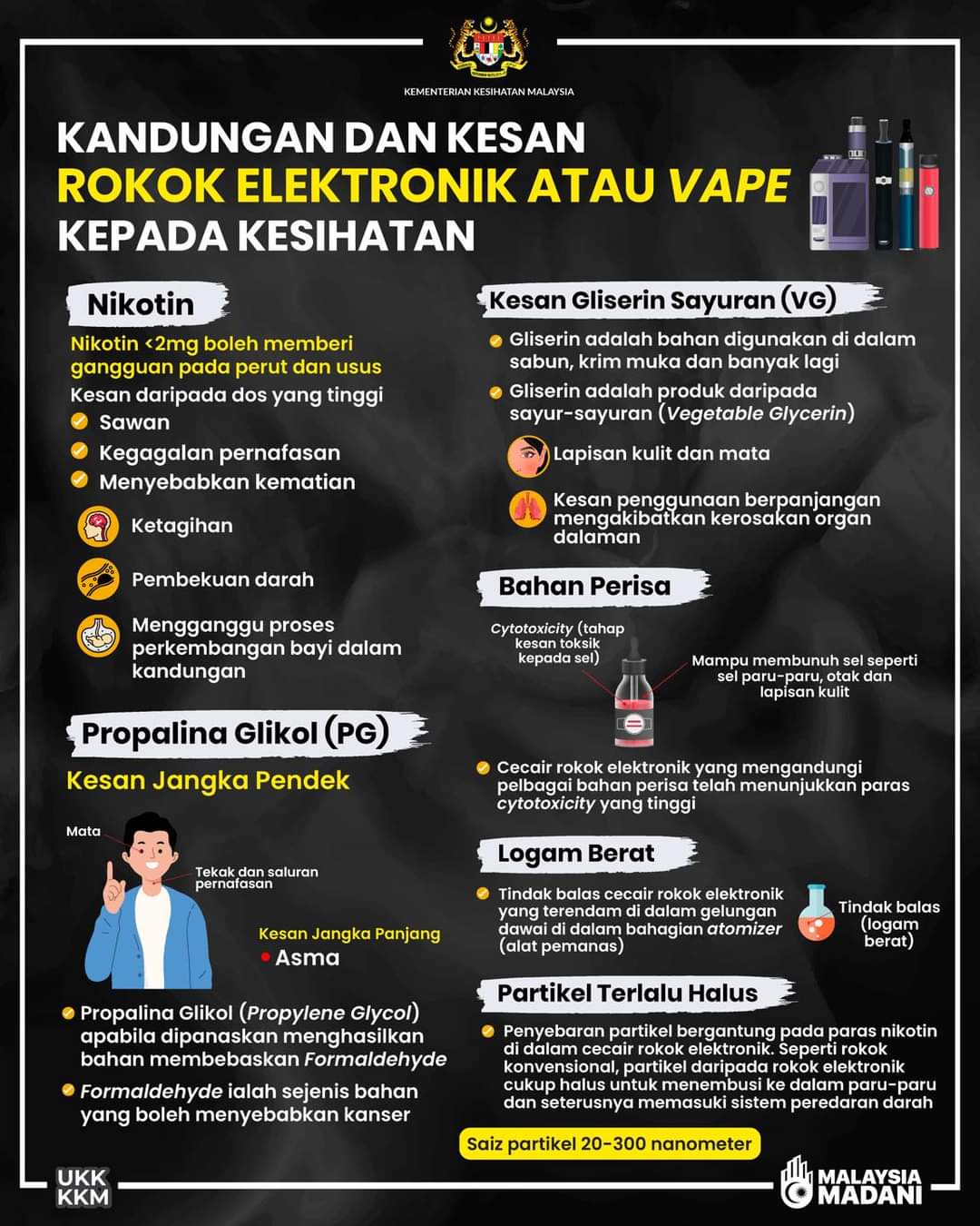 “Akibatnya, lebih ramai golongan muda terjebak dengan aktiviti merokok dan jika dibiarkan berleluasa, tidak mustahil aktiviti penyalahgunaan dadah boleh menular menerusi peranti vape yang digunakan,” katanya dalam satu kenyataan, hari ini.