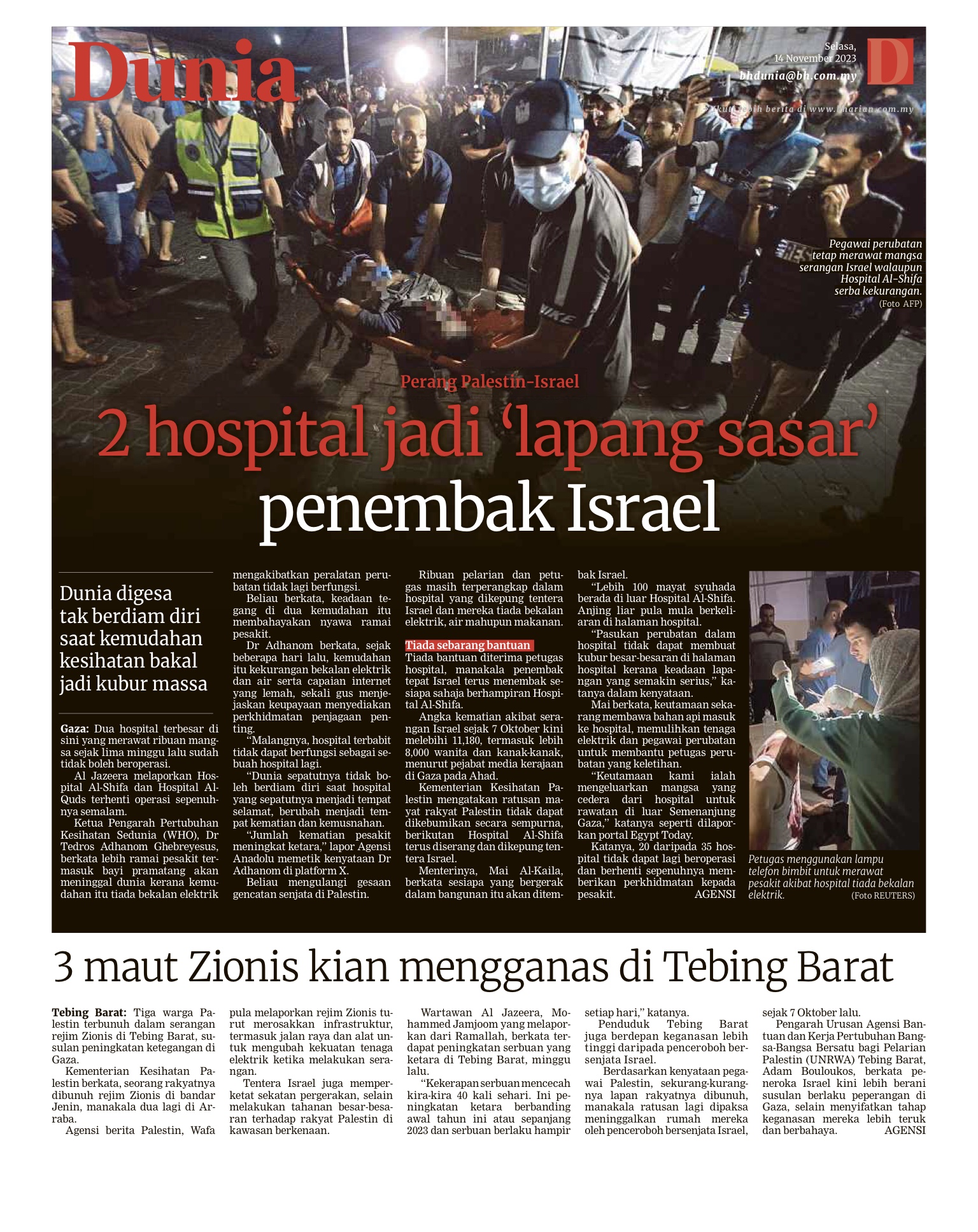 WASHINGTON: Presiden Indonesia, Joko Widodo mendesak Presiden Amerika Syarikat (AS) Joe Biden melakukan lebih banyak usaha untuk menamatkan kekejaman di Gaza, seterusnya membantu mewujudkan gencatan senjata. Pemimpin negara majoriti Muslim paling ramai penduduk di dunia itu berkata, gencatan senjata adalah satu kemestian demi kemanusiaan. “Indonesia merayu kepada AS untuk melakukan lebih banyak lagi usaha bagi menghentikan kekejaman di Gaza,” kata Jokowi, ketika melakukan lawatan rasmi ke Rumah Putih semalam (Isnin petang waktu AS) Ahad lalu, Jokowi berkata beliau akan membawa kepada Biden “mesej yang sangat kuat” daripada sidang kemuncak bersama…