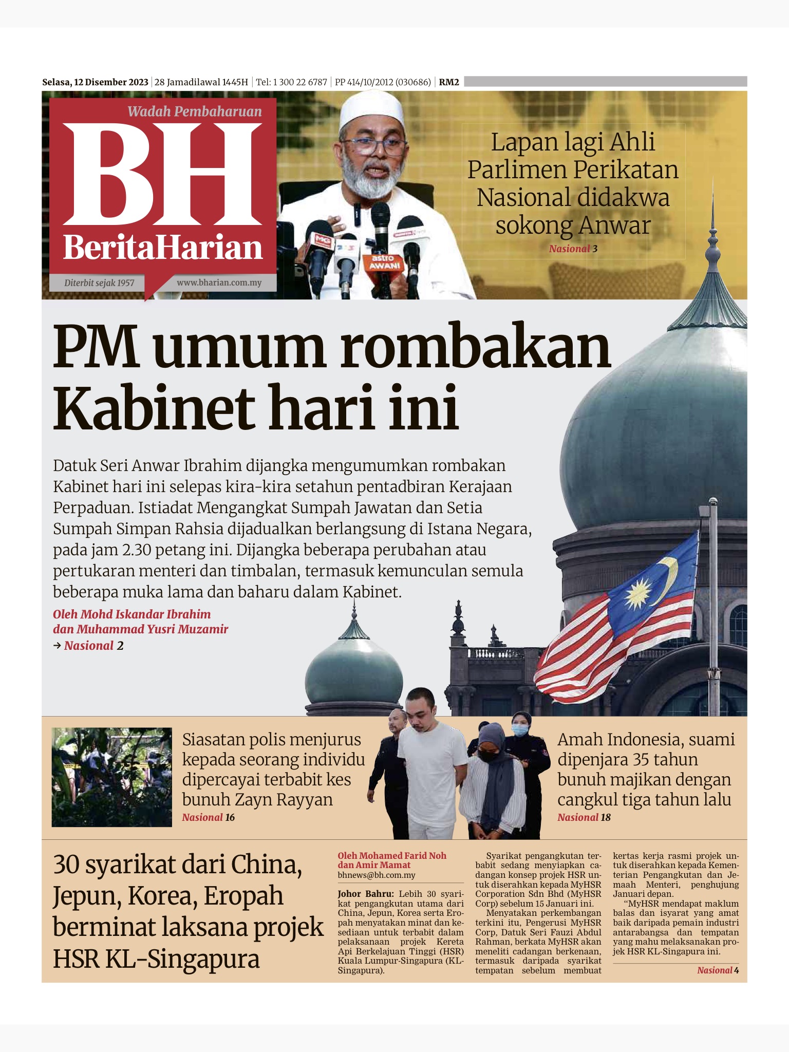 Media Hari Ini Selasa 12.12.2023 12/12/202314/12/2023 Hassan Mohd. Noor Ada masalah teknikal bh, nat, metro