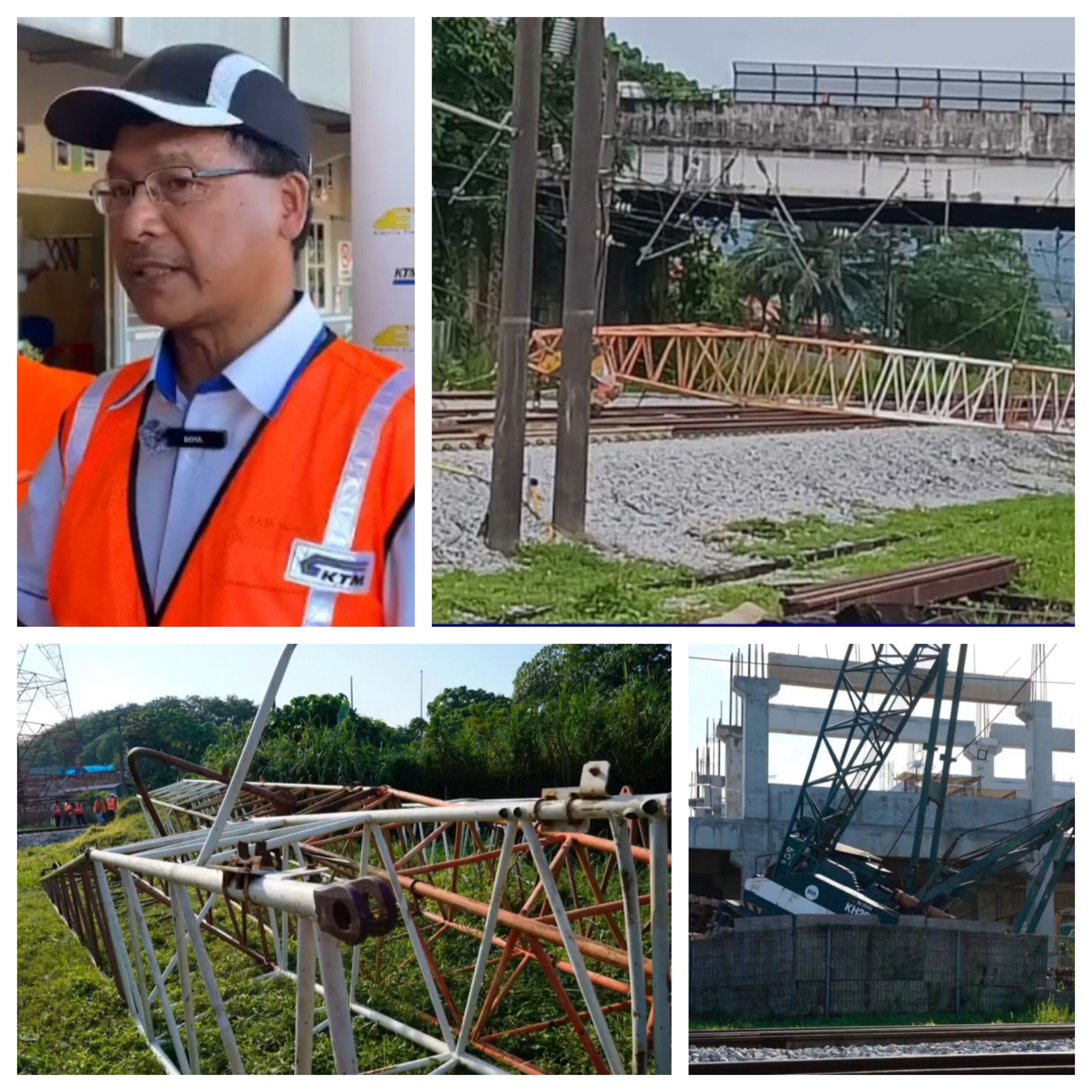 “Struktur yang jatuh bukan sahaja menimpa landasan malahan memutuskan talian babitkan empat bahagian kren yang jatuh atas landasan namun tiada kemalangan jiwa dilaporkan” katanya.