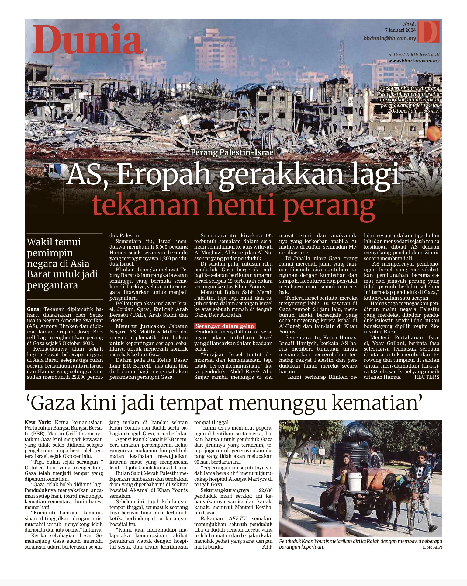 GAZA: Perdana Menteri, Benjamin Netanyahu, terus berikrar hanya akan berhenti melancarkan serangan ke atas Gaza yang menghampiri bulan keempat selepas ‘kemenangan penuh’ memusnahkan Hamas. Pemimpin zionis itu masih berkeras dengan pendiriannya walaupun masyarakat antarabangsa, termasuk Amerika Syarikat (AS) dan Eropah, kini menggesa konflik Israel-Palestin diselesaikan secara diplomatik. Beliau menegaskan Israel akan meneruskan kempennya untuk menghapuskan Hamas, membebaskan tahanan dan memastikan bahawa Gaza tidak lagi menjadi ancaman kepada Israel. “Kita perlu mengetepikan segala-galanya sehingga kemenangan sepenuhnya dicapai,” kata Netanyahu dalam satu kenyataan yang dikeluarkan oleh pejabatnya. Perang yang dicetuskan oleh serangan…