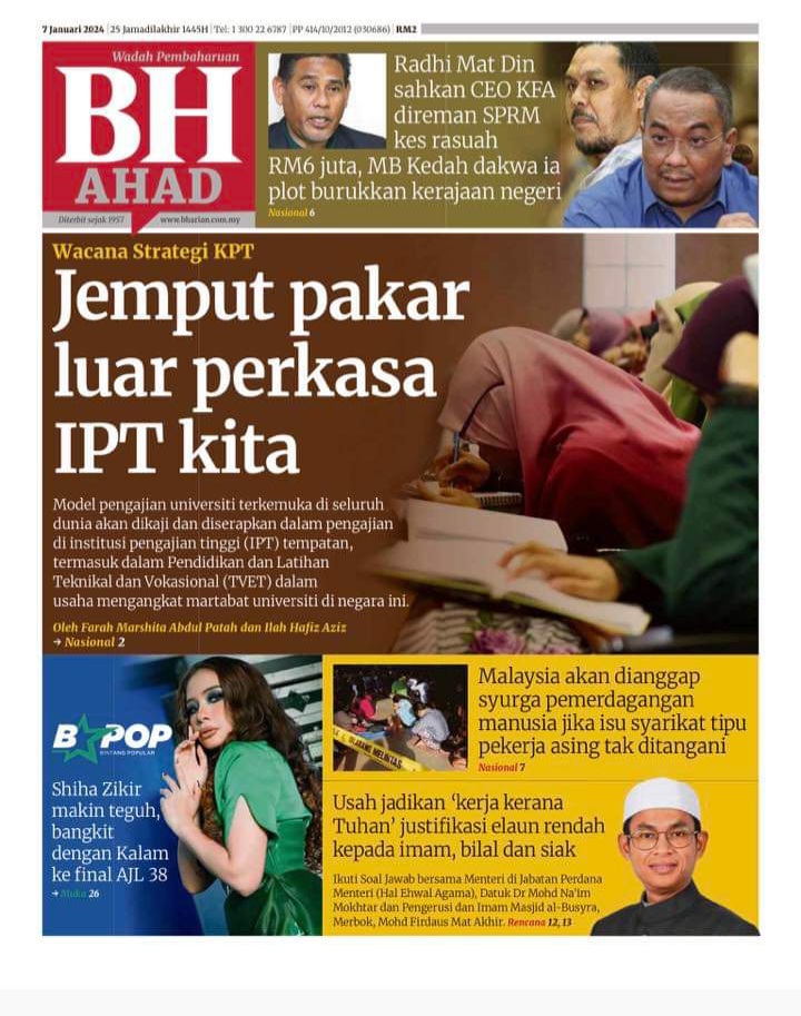 KUALA LUMPUR 7 Jan. – Bekas Ahli Parlimen Pokok Sena, Mahfuz Omar dikekalkan sebagai Naib Presiden Amanah manakala seorang lagi yang dilantik memikul tangggungjawab itu adalah bekas Ahli Parlimen Lumut, Dr Hatta Ramli. Pelantikan itu dibuat Jawatankuasa Pimpinan Amanah Nasional (JKP) sesi 2023 – 2026 dalam mesyuarat pertamanya selepas pemilihan yang dipengerusikan oleh Presidennya, Mohamad Sabu. Pada pemilihan sempena Konvensyen Amanah Nasional 24 Disember lalu, Mahfuz mendapat 694 undi iaitu pada kedudukan kelima undian tertinggi manakala Mohd Hatta yang juga bekas Setiausaha Agung mendapat 549 undi, pada kedudukan 11. Tiga…