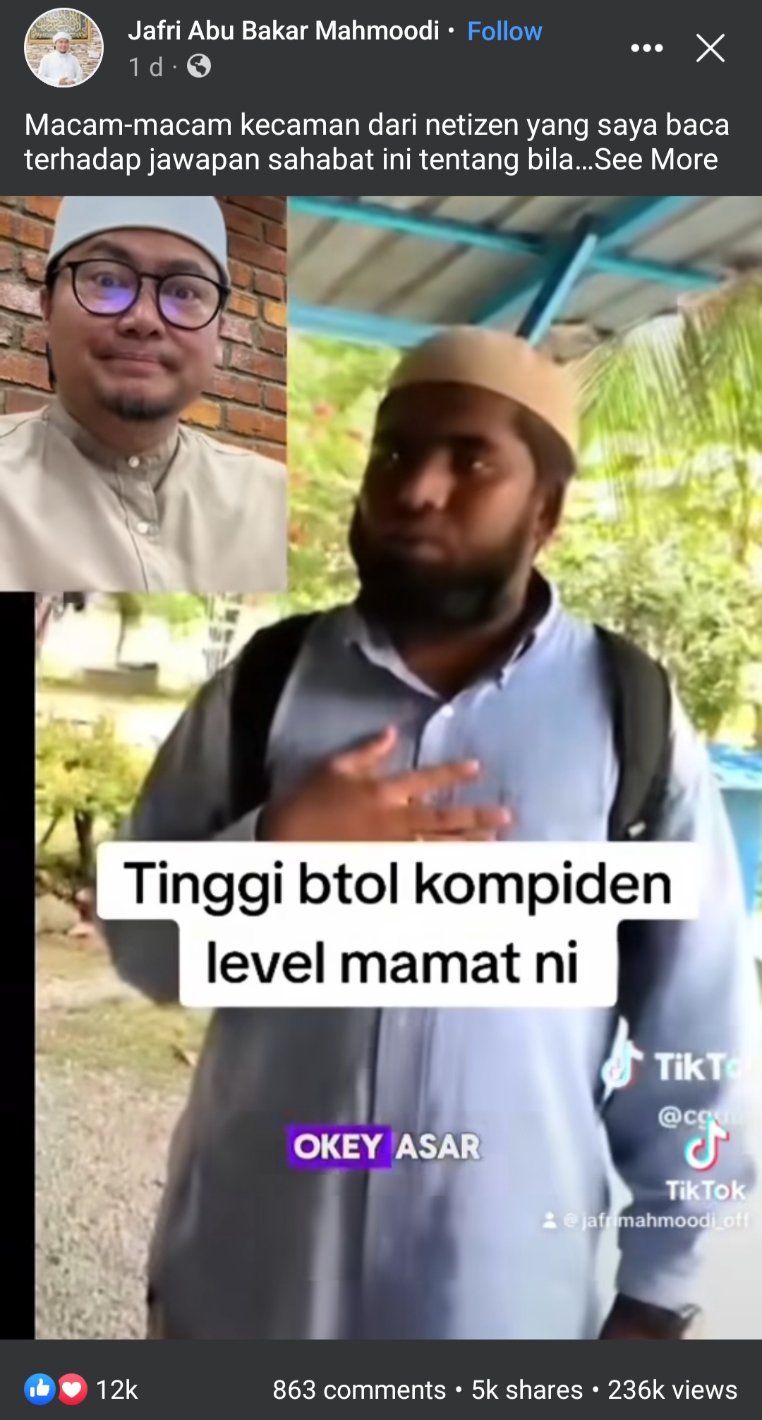 KUALA LUMPUR 29 Jan. – Solat Subuh dibuat sebanyak empat rakaat, Zuhur pula 12 rakaat, Asar (empat rakaat), Maghrib (lima rakaat) dan solat Isyak, iaitu 17 rakaat. Itu antara kandungan sebuah video yang tular di media sosial, memaparkan lelaki warga asing menjawab pertanyaan mengenai berapa rakaat bagi setiap solat fardu. Dalam rakaman video terbabit, seorang individu bertanya kepada lelaki warga asing yang tidak didedahkan identitinya mengenai jumlah rakaat bagi setiap solat fardu. Mengulas perkara ini, pendakwah, Jafri Mahmoodi menasihatkan umat Islam supaya tidak cepat menjatuhkan hukum ke atas perkara yang…