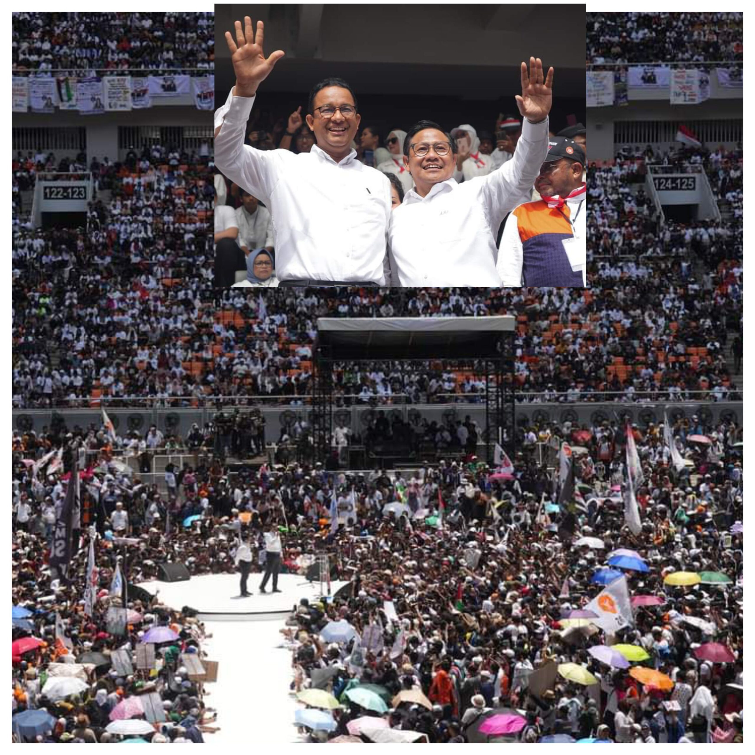 Mantan Gabenor Jakarta, Anies dan pasangannya Muhaimin Iskandar mengadakan perhimpunan kempen besar-besaran di Stadium Antarabangsa Jakarta di Jakarta Utara pada pagi ini, 10 Februari.