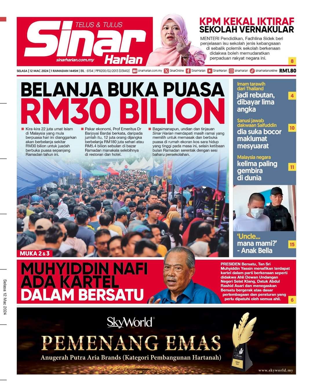 KUALA LUMPUR 12 Mac – Kerajaan membelanjakan RM123 juta bagi menguruskan 20 depoh tahanan imigresen seluruh negara tahun lalu, kata Menteri Dalam Negeri, Saifuddin Nasution Ismail. Katanya, sebanyak RM80 juta lagi adalah bagi perbelanjaan makanan dan menanggung bayaran tiket feri dan kapal terbang apabila tahanan diusir. “Begitu sekali kita jaga tapi Human Rights Watch (HRW) kata kita seksa sampai berlaku kematian.,” katanya menjawab soalan asal Lim Guan Eng (PH-Bagan) pada Waktu Pertanyaan-Pertanyaan Menteri di Dewan Rakyat, hari ini. Katanya, akibat laporan itu, Jawatankuasa Khas Parlimen (PSC) sudah memanggil Kementerian Dalam…