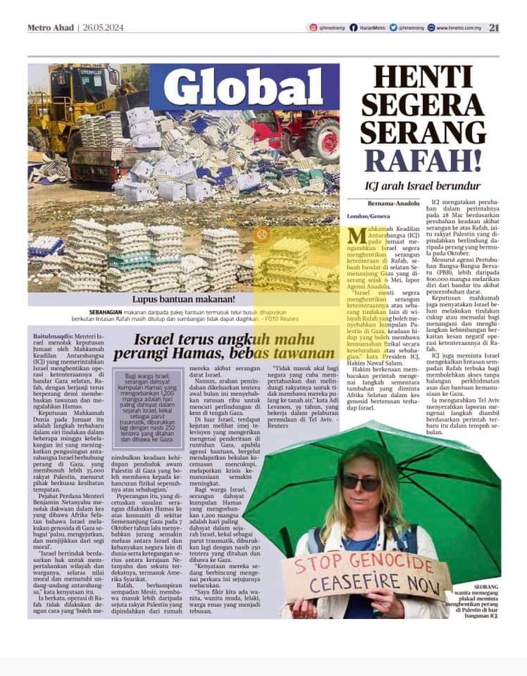 TEL AVIV: Ribuan penunjuk perasaan Israel turun ke jalanan, semalam, untuk menggesa diadakan pilihan raya yang baharu serta menuntu lebih banyak tindakan daripada kerajaan untuk membawa pulang tebusan yang ditahan di Gaza. Ini bukan kali pertama penunjuk perasaan mengambil tindakan seumpama itu yang memberi tekanan kepada Perdana Menteri, Benjamin Netanyahu. Protes dilihat berterusan ketika perang di Gaza menghampiri bulan ketujuh dan di tengah-tengah kemarahan yang semakin meningkat terhadap kerajaan kerana masih terdapat 133 tebusan Israel ditahan gerakan Hamas. Media melaporkan kebanyakan rakyat Israel menyalahkan Netanyahu atas kegagalan keselamatan yang membawa…