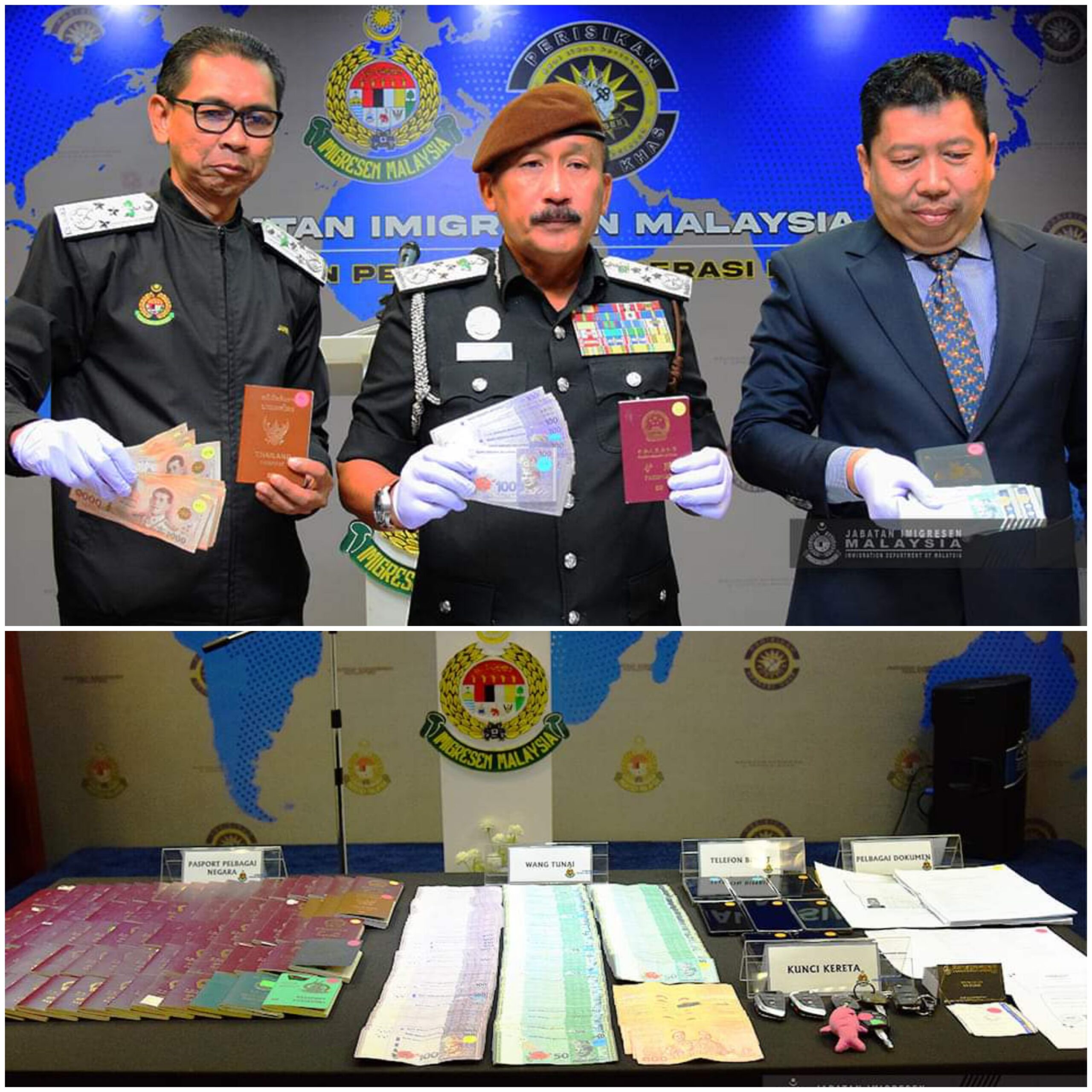 Beliau berkata turut dirampas borang permohonan Pas Lawatan imigresen, wang tunai RM57,260 dan 29,660 baht dan lima buah kenderaan.