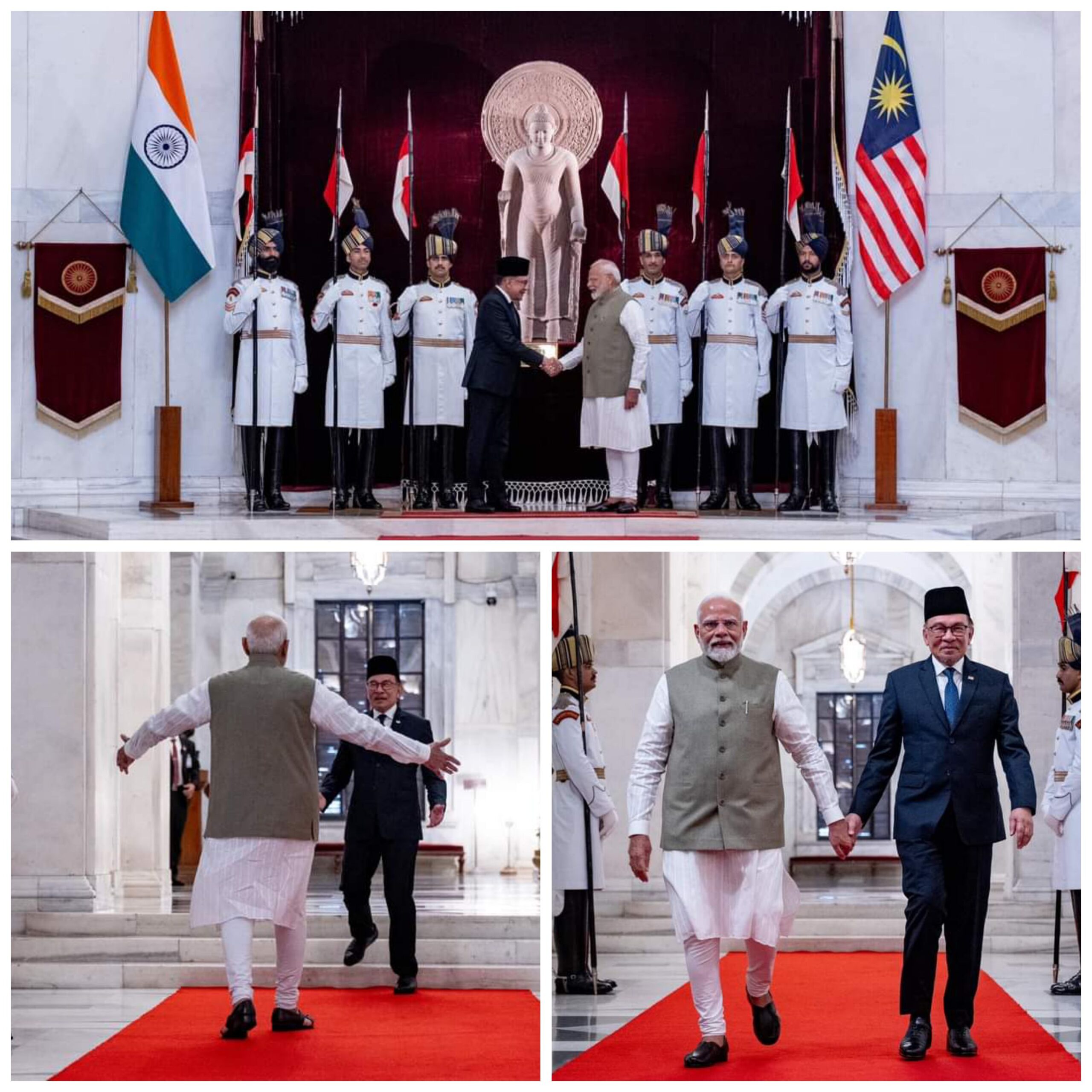 Terdahulu, Anwar diberi sambutan rasmi oleh rakan sejawat, Modi 9 pagi ini di kediaman rasmi Presiden India, Rashtrapati Bhavan, di sini.