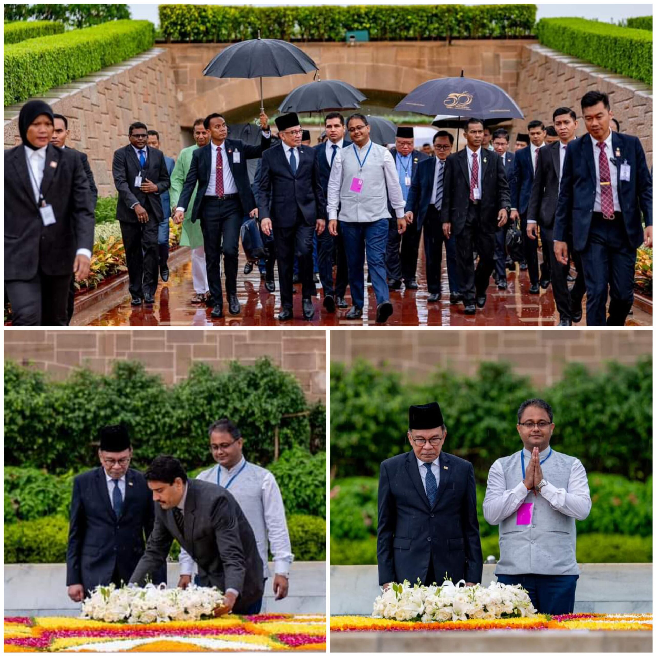 Selepas itu, Anwar diberikan penghormatan untuk meletakkan kalungan bunga di tugu Peringatan Gandhi, bapa kemerdekaan India, di Kompleks Peringatan Raj Ghat, disusuli dengan kunjungan hormat Menteri Hal Ehwal Luar India, S Jaishankar.